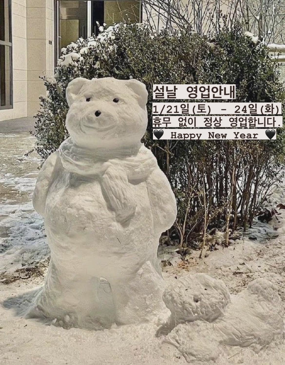 1월21일(토) - 24일(화) 휴무없이 영업합니다.