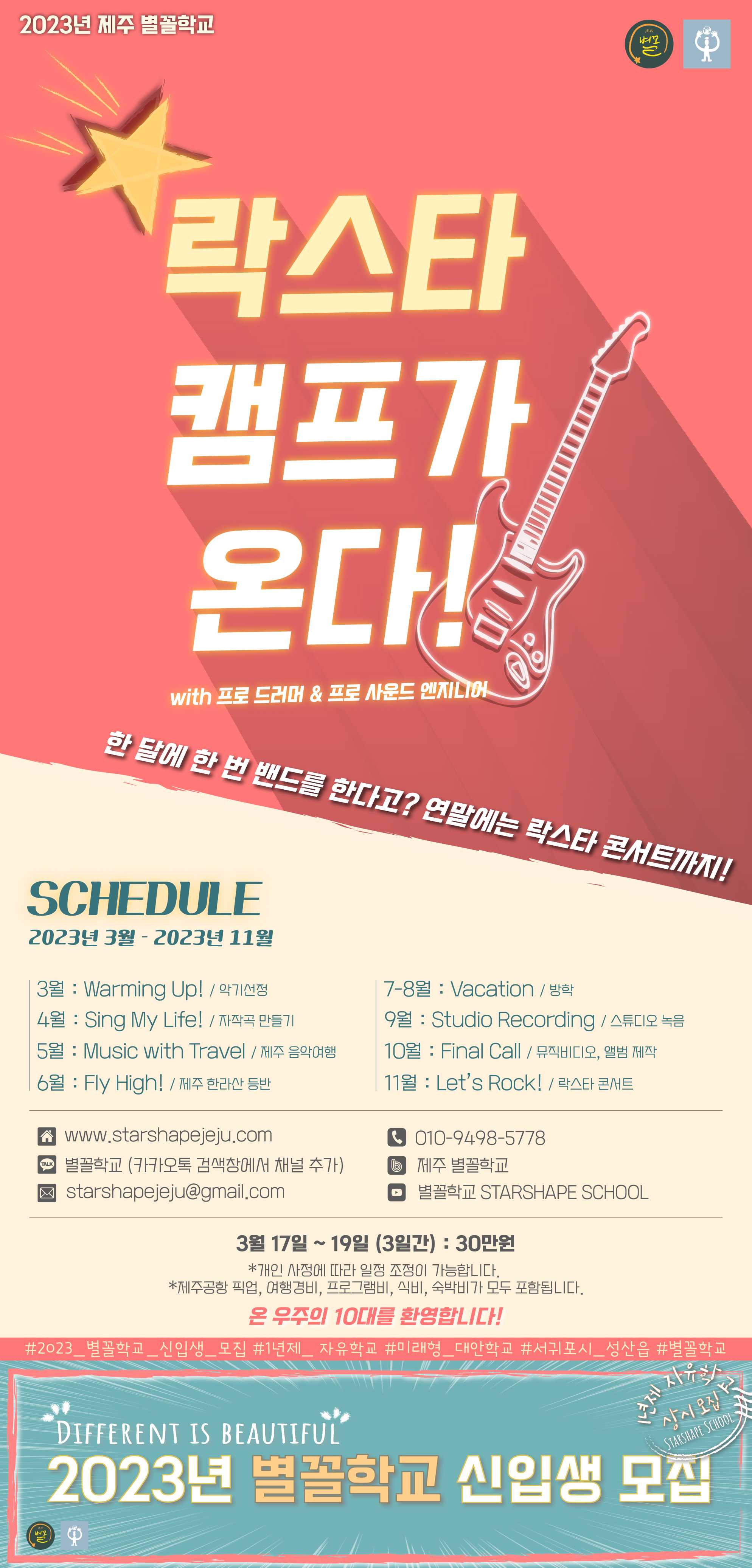 [모집중] 2023년 별꼴학교 [락스타 캠프가 온다!] with 프로 드러머, 프로 사운드 엔지니어