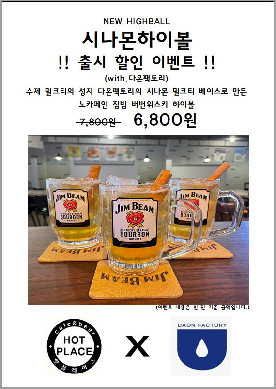 할인된 금액으로 풍미 가득한 시나몬 하이볼을