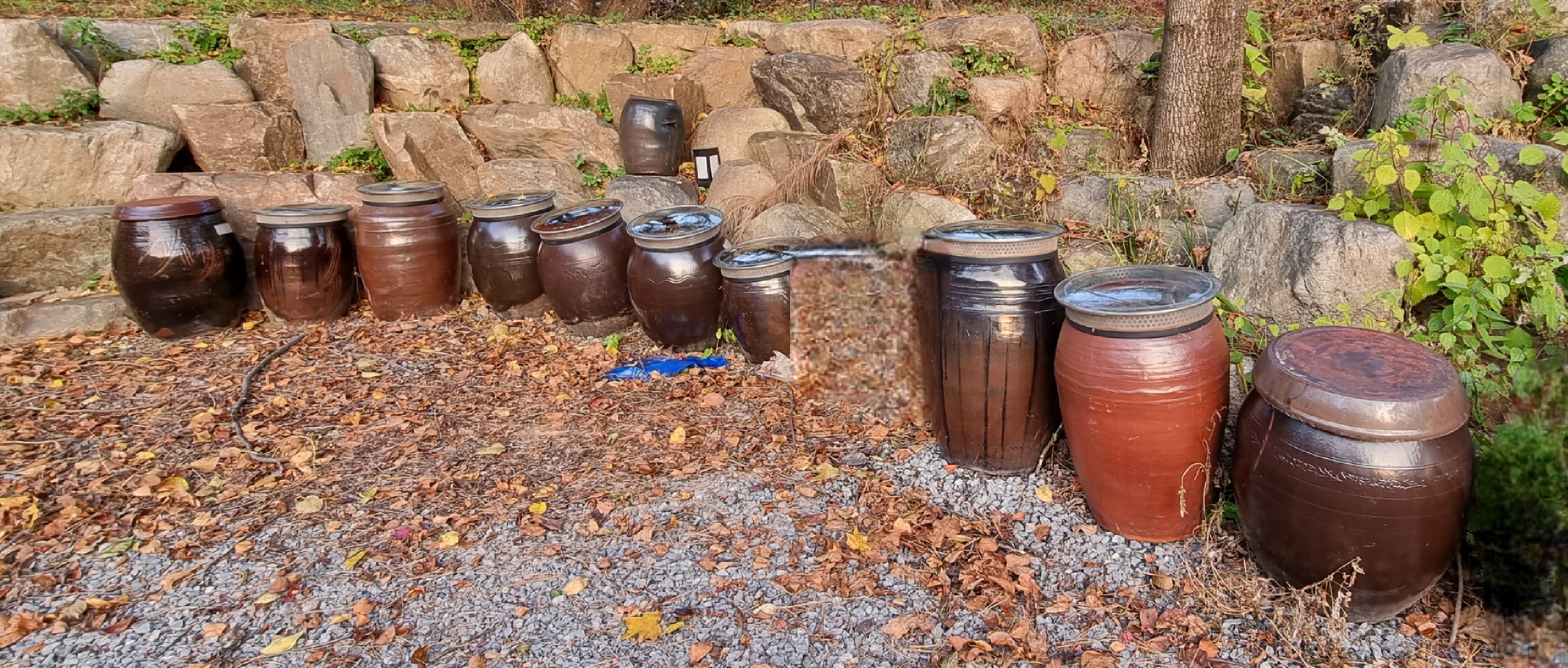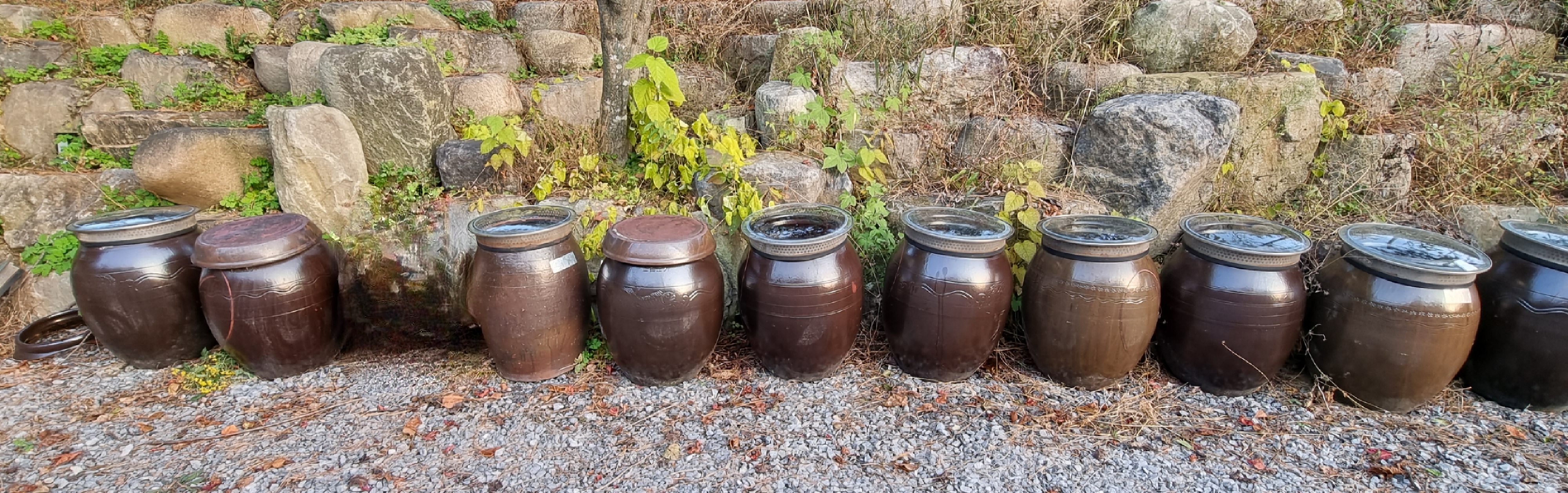 항아리 안에 내용물(묵은 된장, 막장)이 있습니다.
