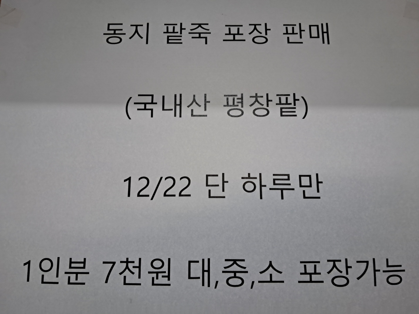 오늘 단 하루 삼태기식당에서 팥죽을 판매합니다.