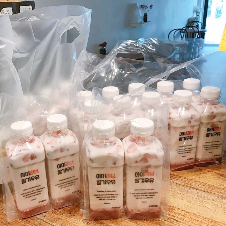 유기농원당으로 직접 만든 딸기시럽과 생딸기 가득 들어간 생딸기우유