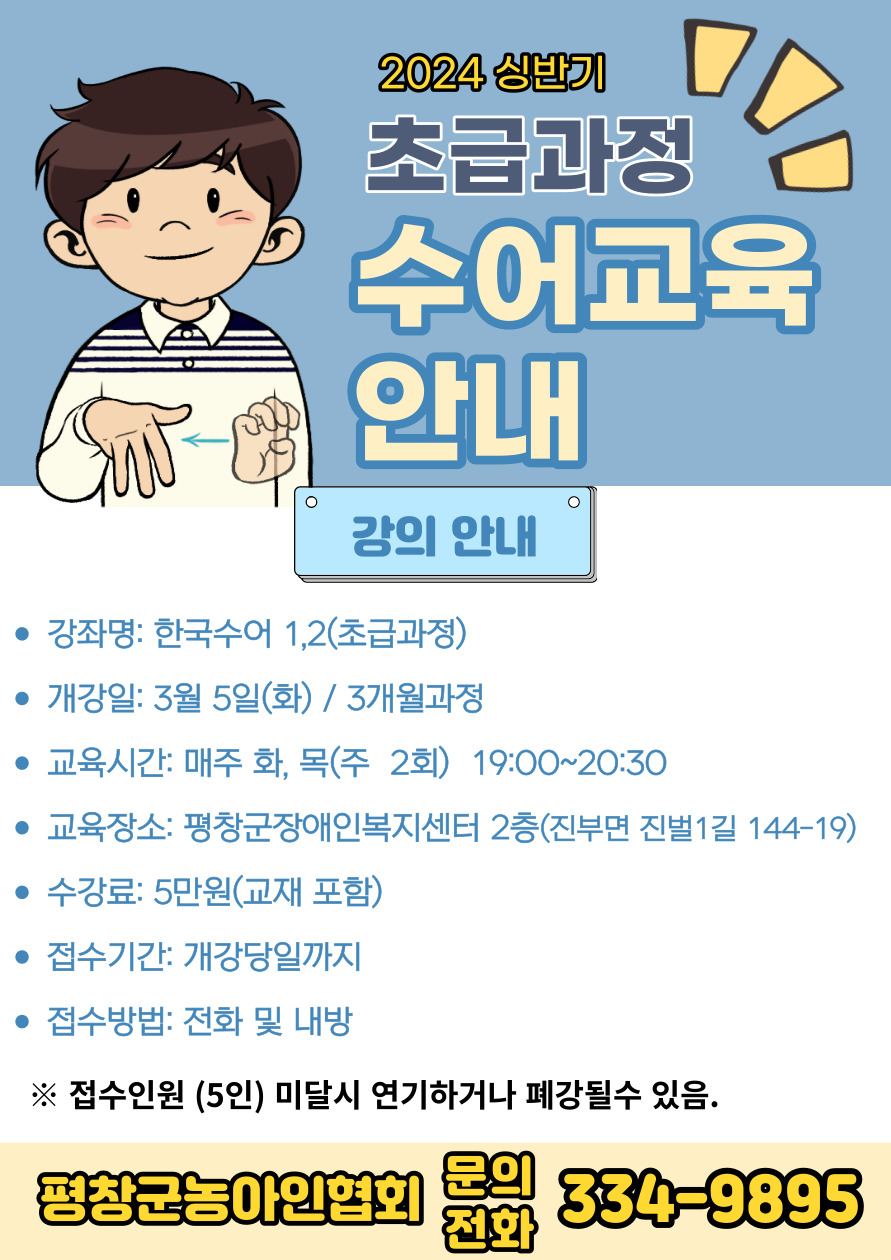 [평창군농아인협회] 2024년 상반기 수어교실 안내