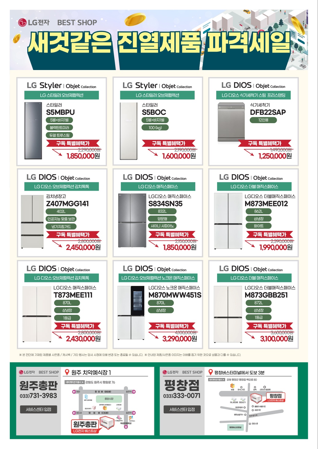 안녕하세요. 엘지전자 평창점입니다. 3월 25일부터 정부에서 주관하는 1등급 제품 특별혜택이 있습니다.
