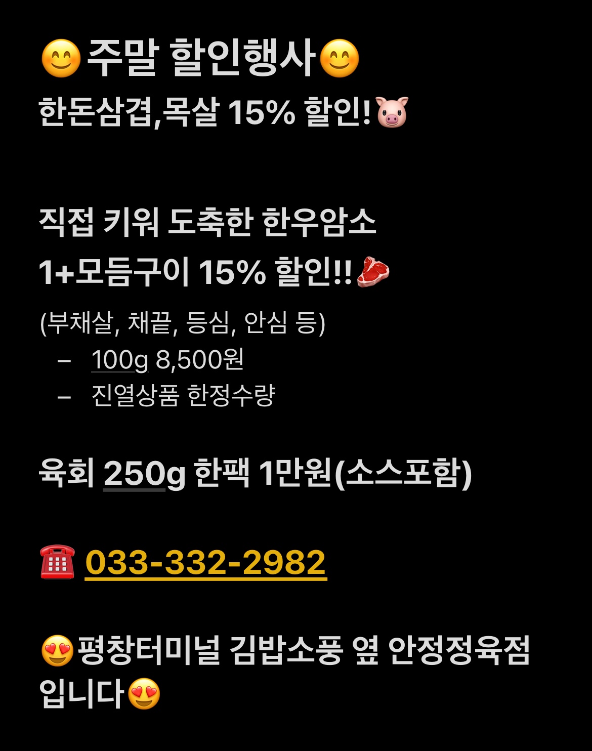 한결축산평창점 주말 금,토,일세일♥