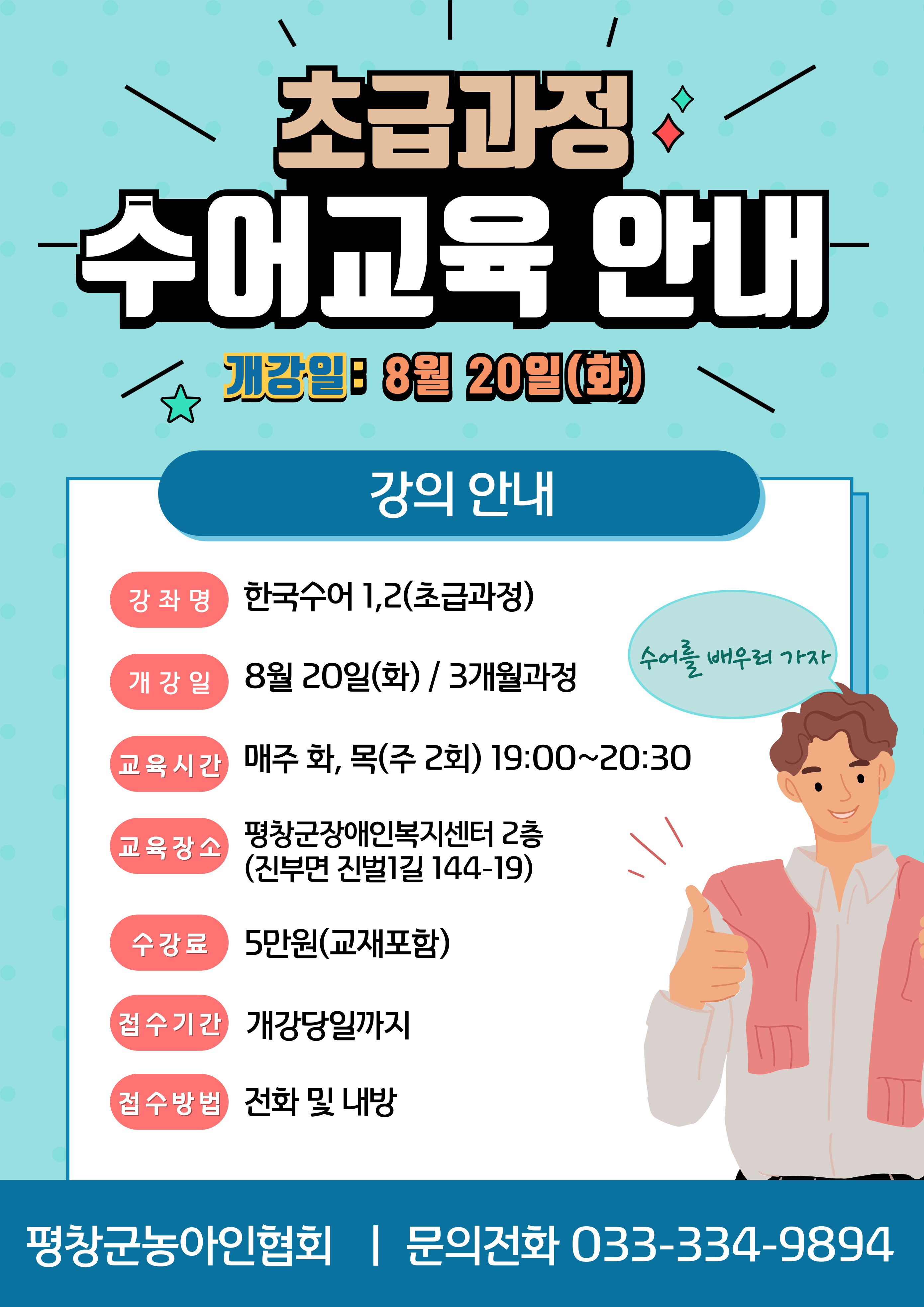 [평창군농아인협회] 2024 "하반기" 초급과정 수어교육 안내