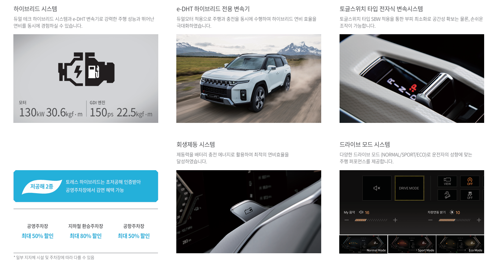 2. 듀얼모터 시스템. 시속 60Km까지 전기로 운행(연비 극대화)