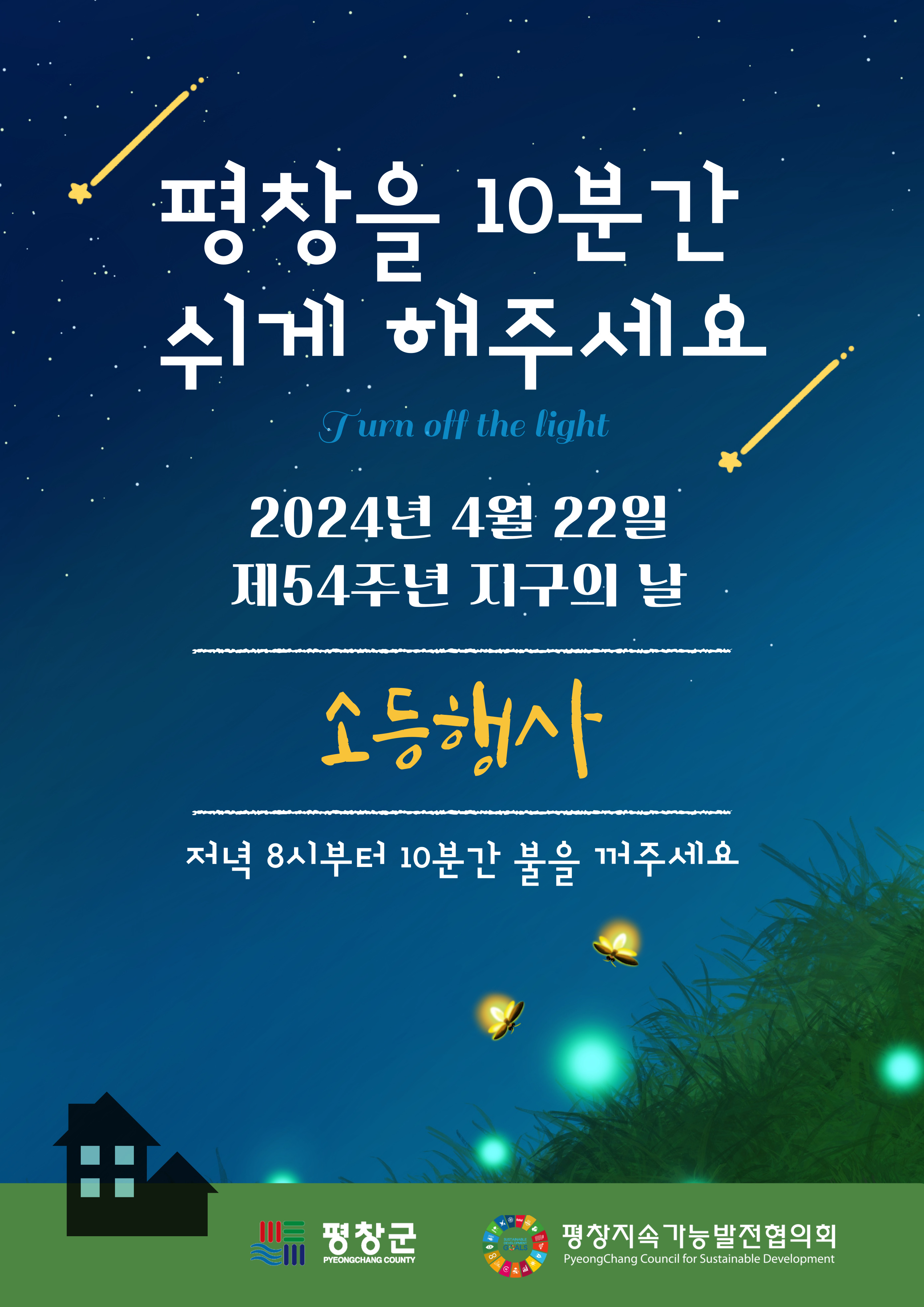 평창지속가능발전협의회에서는 카페방림과 함께 지구의 날을 맞아 지구의 날 소등 행사, 기후변화 주간 캠페인과 늦게 피워 더 예쁜 방림 벚꽃ing 행사를 함께 진행합니다.