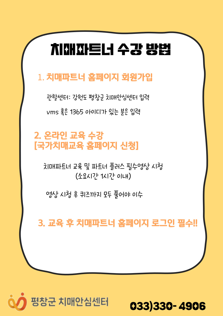 사전교육: 치매파트너 및 파트너 플러스 온라인 교육 필수 이수(국가치매홈페이지 이용)