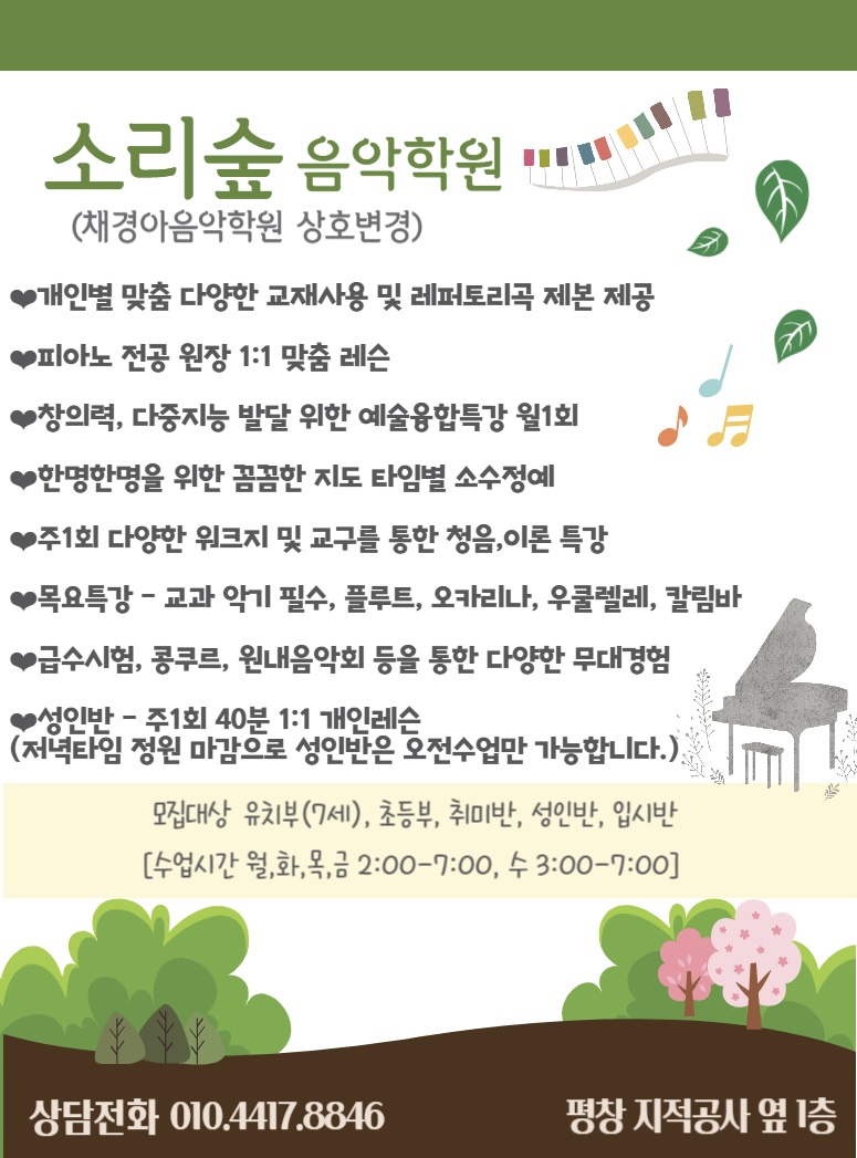 “소리숲 음악학원” 으로 변경하였습니다.