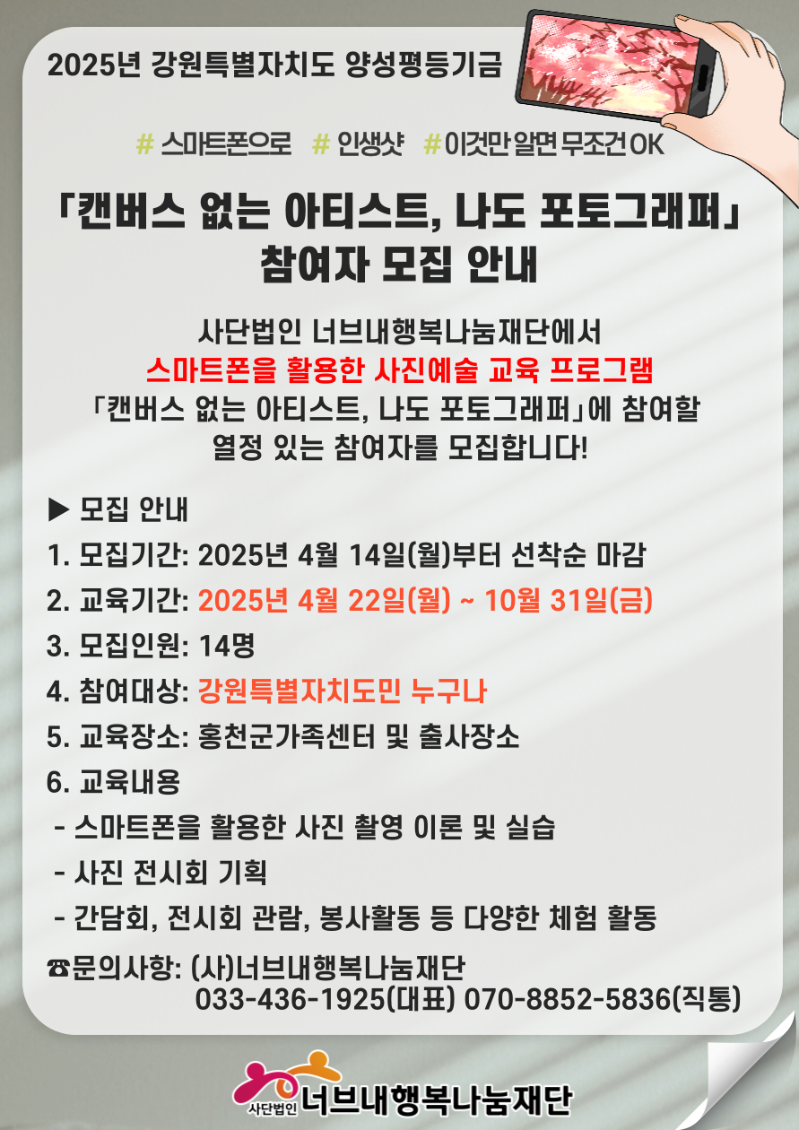 ☎문의 : (사)너브내행복나눔재단 033-436-1925(대표), 070-8852-5836(직통)