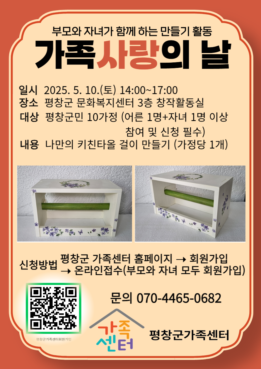 [평창군가족센터] '가족사랑의 날' 나만의 키친타올 걸이 만들기 "평창" 대상자 모집