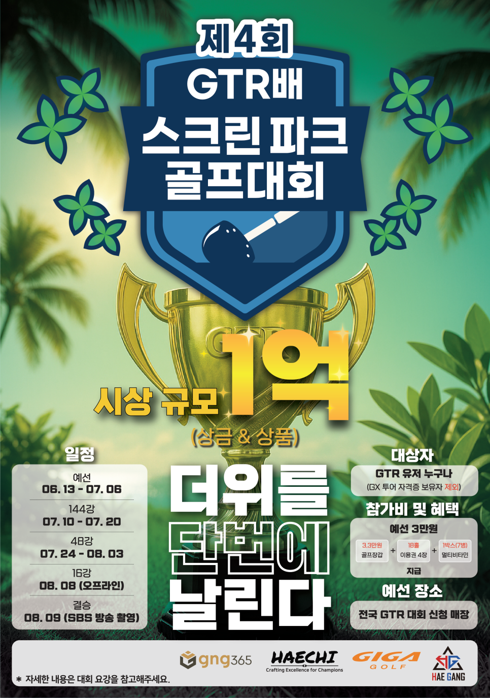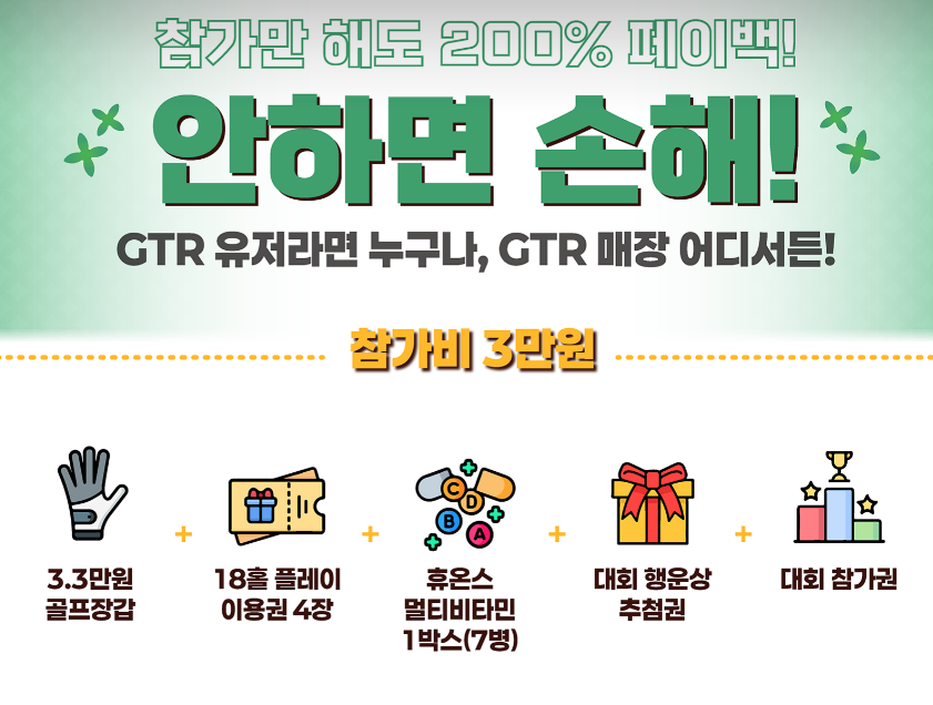 참가자 전원에게 신청한 매장에서 18홀 이용권 4장을 드립니다.