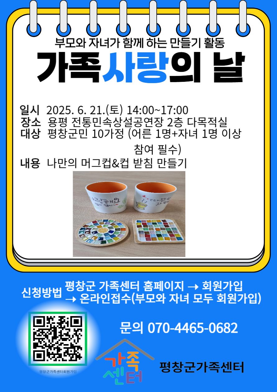 [평창군가족센터] '가족사랑의 날' 나만의 머그컵&컵받침 만들기 "용평" 대상자 모집