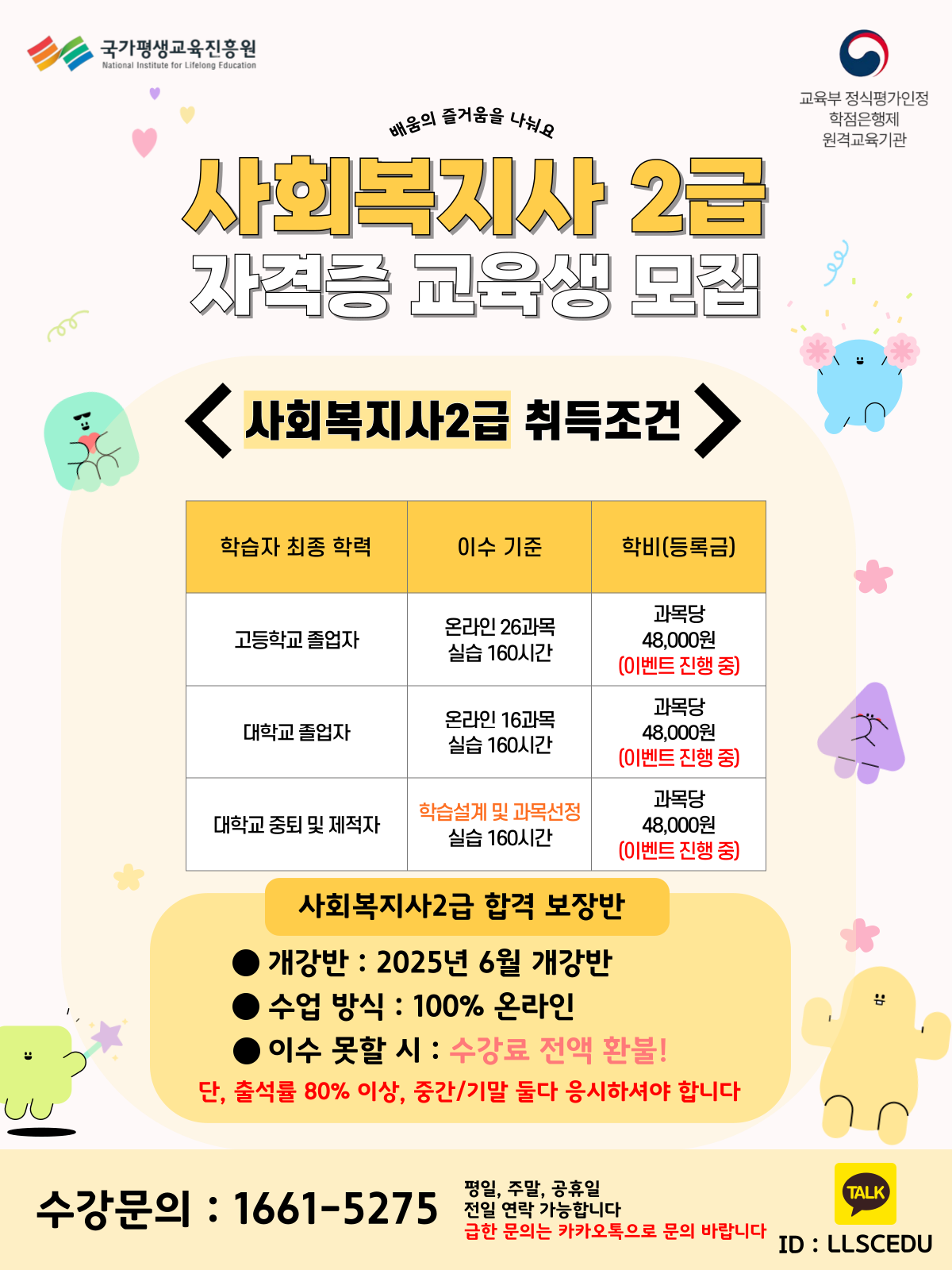 가. 온라인 과목 : 과목당 48,000원(최대 평생교육지원센터 10만 2천원씩 지원)