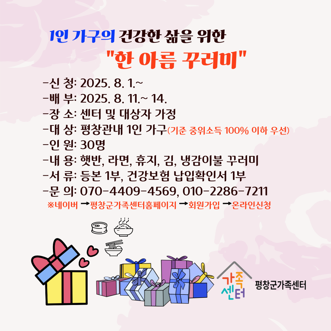 1인 가구의 건가한 삶을 위한 한 아름 꾸러미