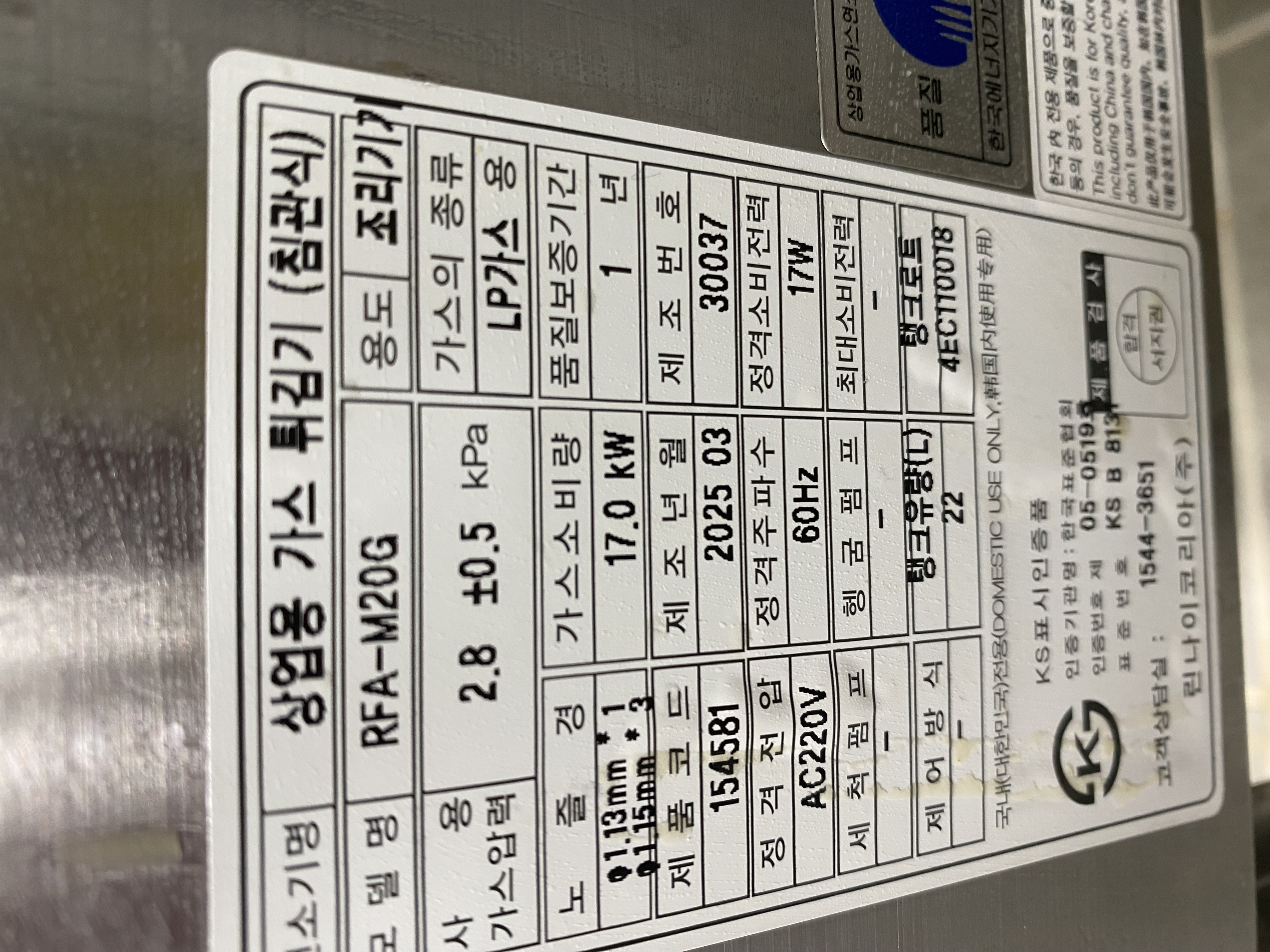 린나이 RFA-M20G 가스 튀김기 판매합니다.