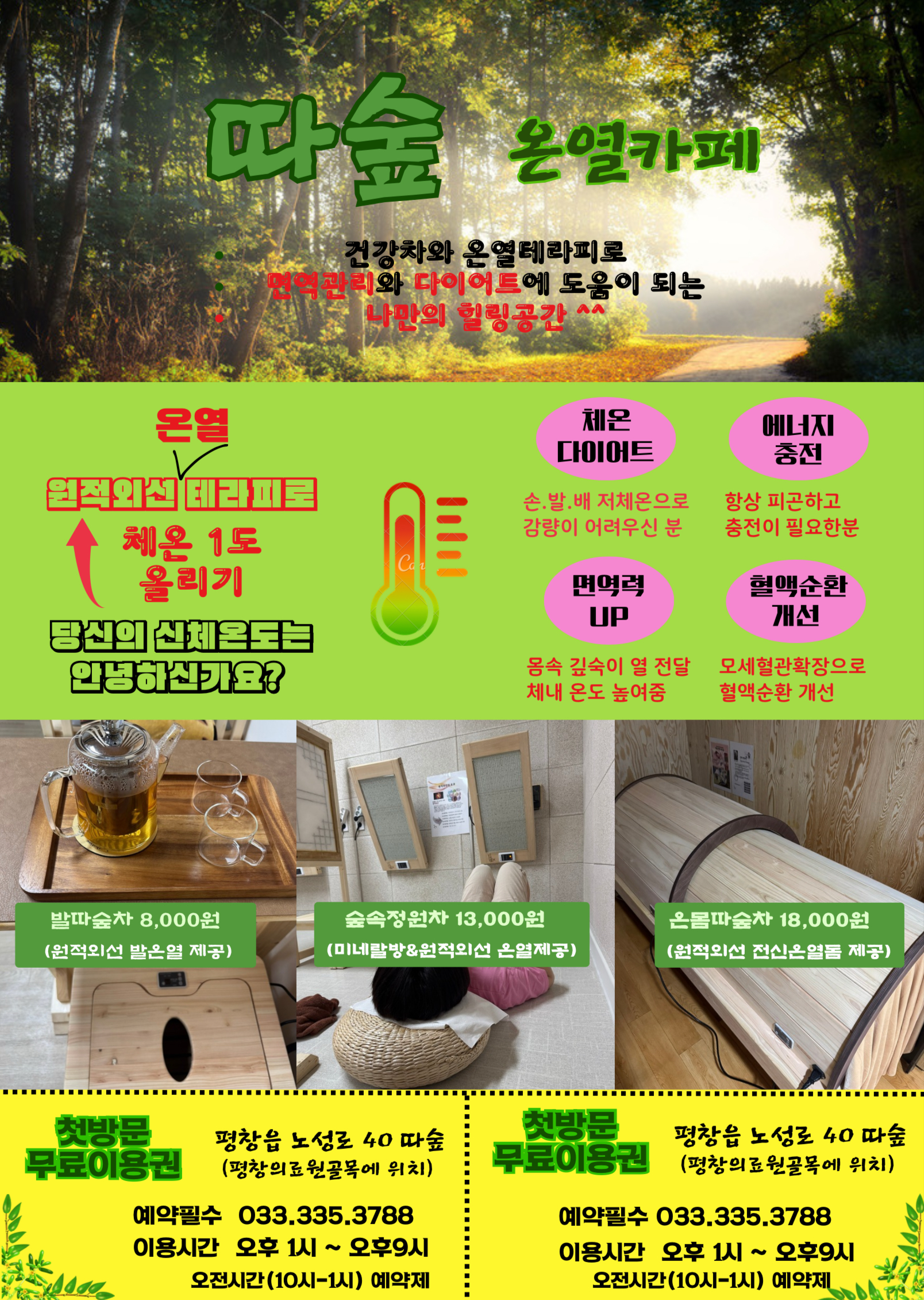 저희 "따숲"온열카페는 몸을 따뜻한 온도로 유지시키면서