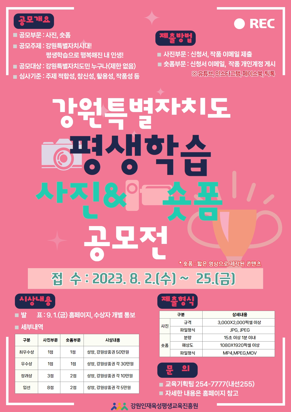 [강원인재육성평생교육진흥원] 강원특별자치도 평생학습 사진&숏폼 공모전 공고