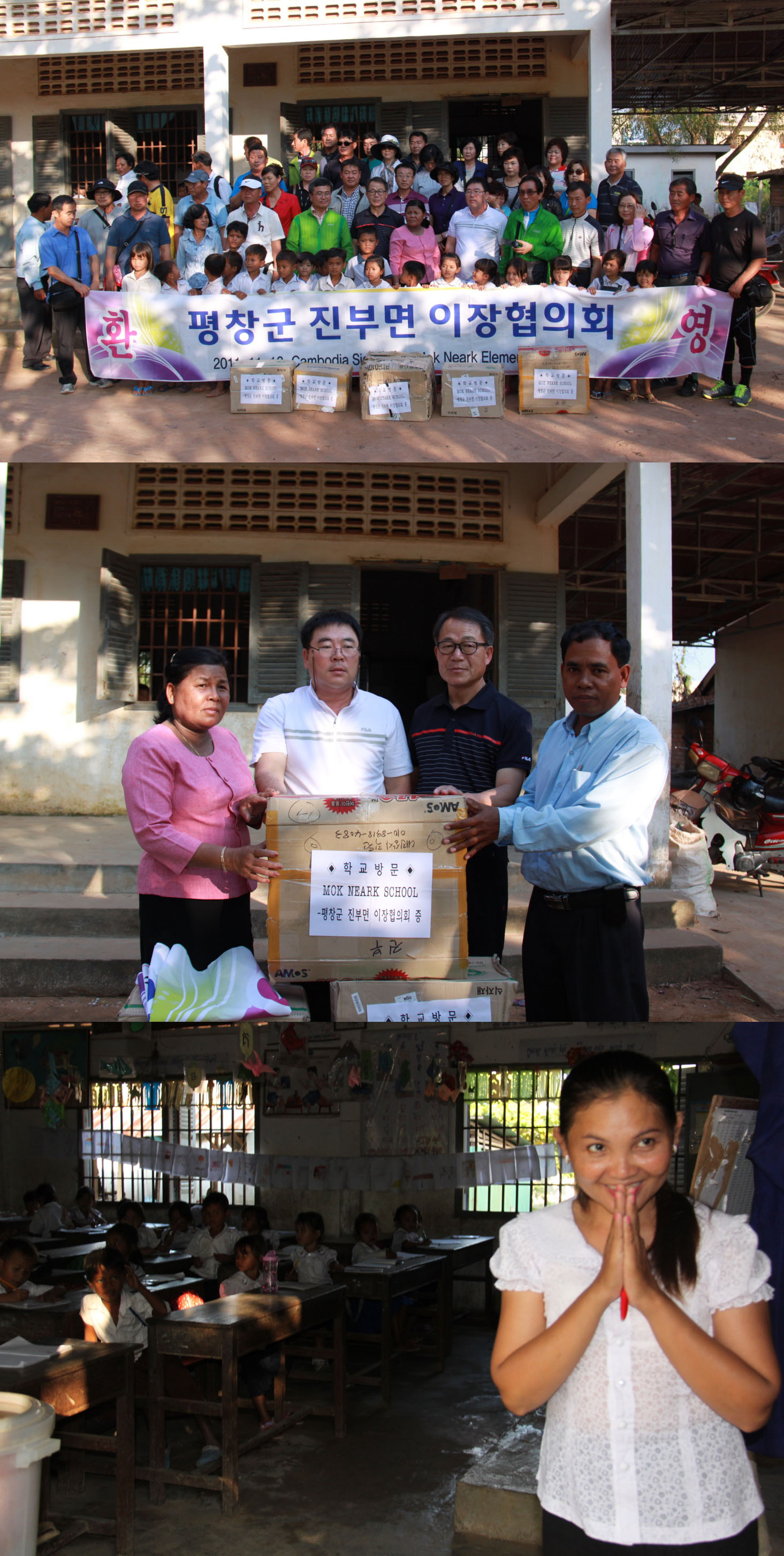 진부면이장협의회(회장 김일동)는 2011년 11월 12일 캄보디아 씨엔립에 있는 몽리아 학교를 방문하여 열악한 환경에서 열심히 공부하고 있는 학생들에게 학용품을 전달 하였습니다.