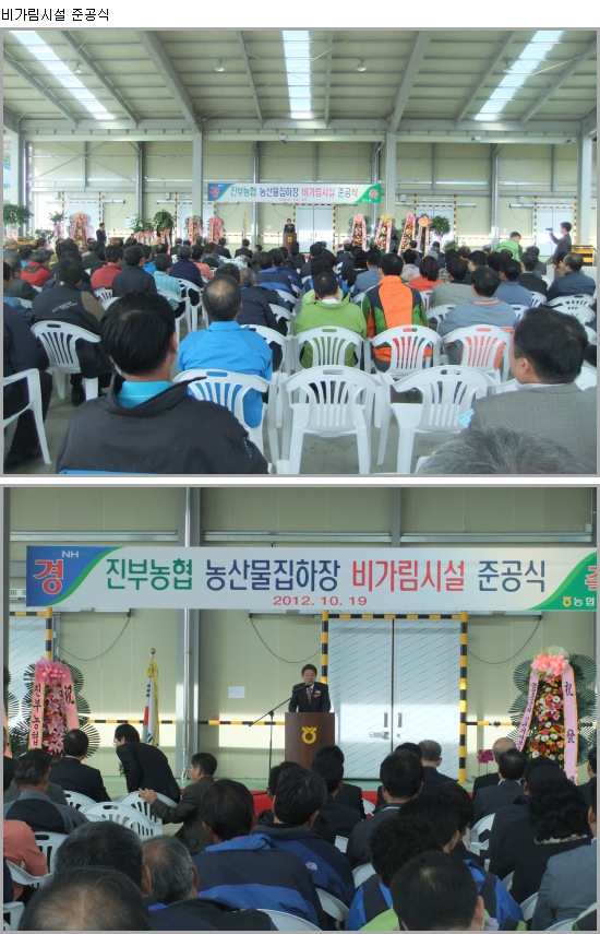 10. 19. 11:00 진부농협경제사무소에서는 500명이 참석한 가운데 진부농협 (조합장 김종택) 주관으로 비가림시설 준공식이 있었다.