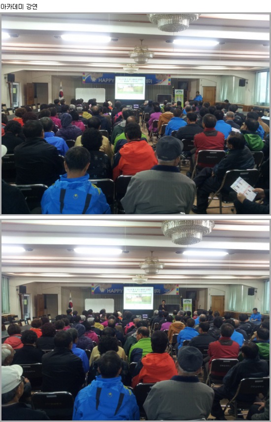 전국 유기농생산자협회 이해극 회장이 희망농촌이야기하는 주제로 열띤 강연을 해 주었다. 궂은 날씨에도 130여명 이상의 주민들이 참석을 해주어 아카데미 강연에 깊은 관심을 가졌다.