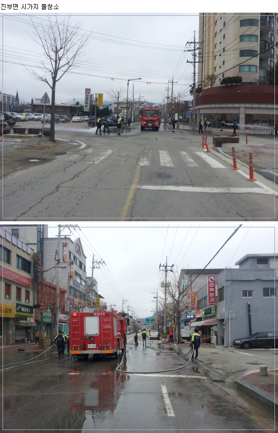 ○ 지난 (4.16) 09:30 진부면 시가지일원에서 진부면남녀의용소방대, 진부자율방범대, 청송청년회, 진부파출소, 대관령지사, 진부119안전센터 직원 등 200여명이 참여한 가운데 진부시가지 도로면 물청소를 실시하였음.