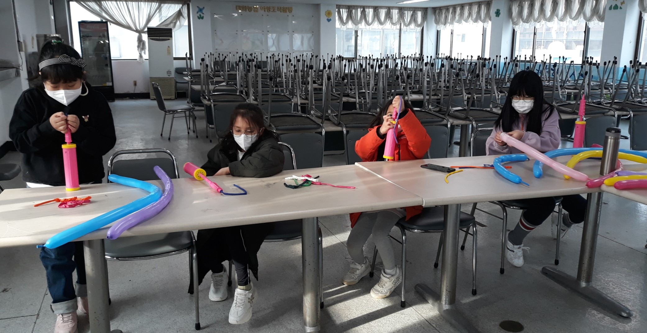 3월 대화면) 내가 만드는 풍선장식과 신바람 고고장구 수업사진입니다.