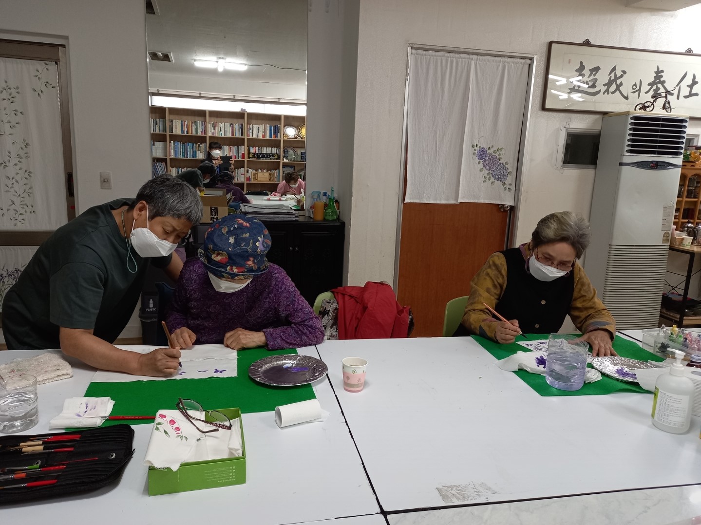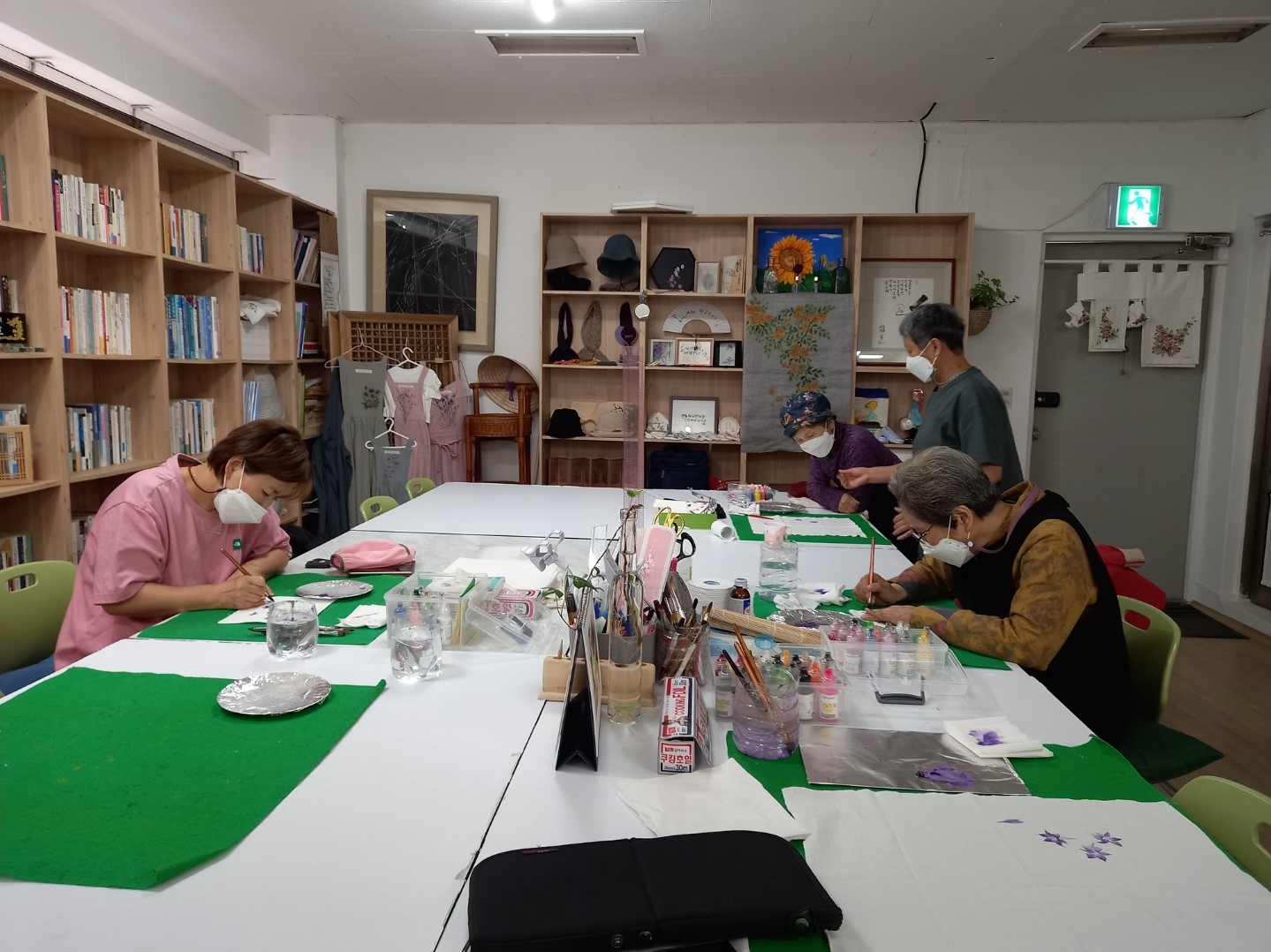 *천아트- 광목천에 "비비추" 그리기를 했어요.