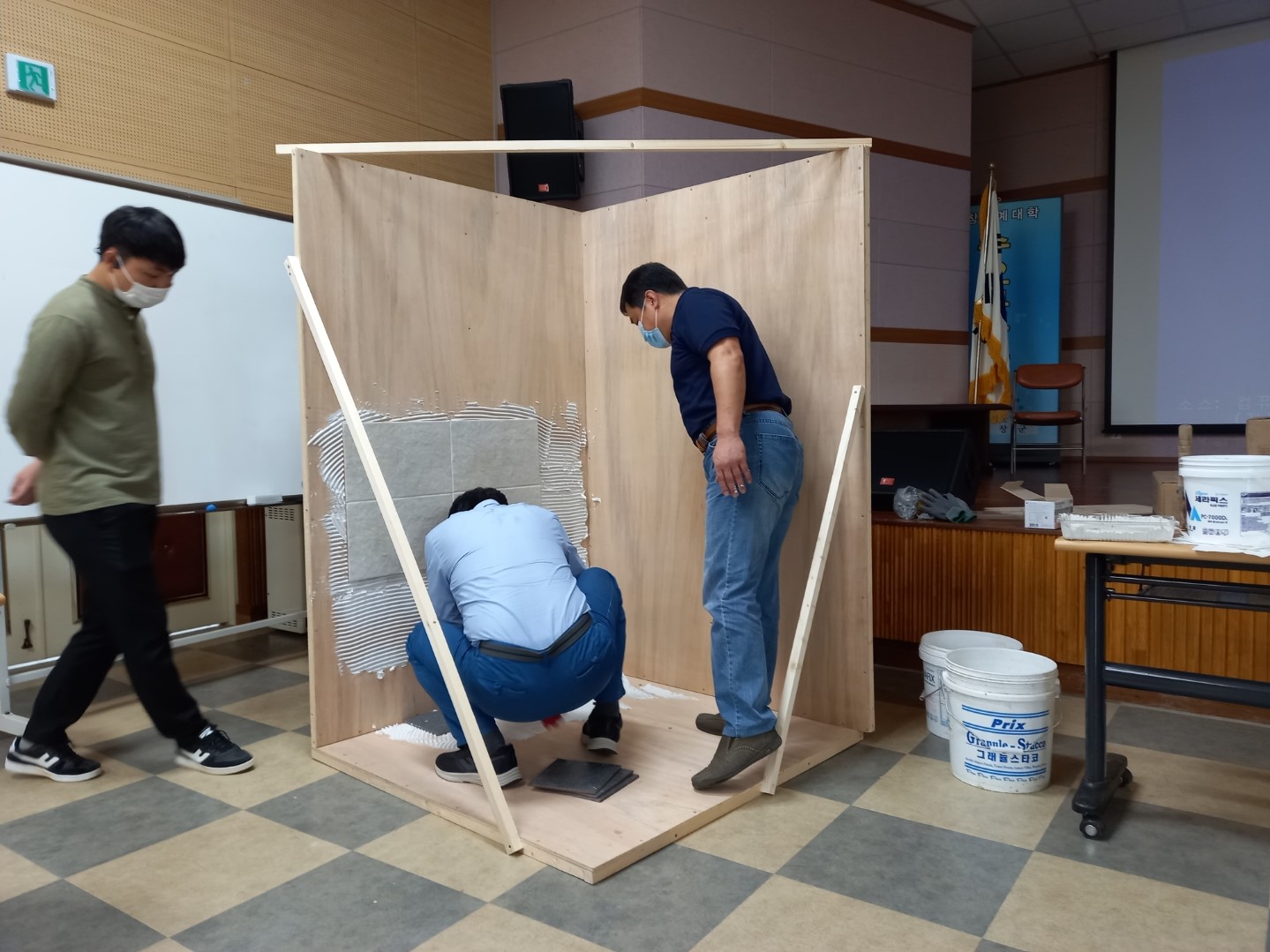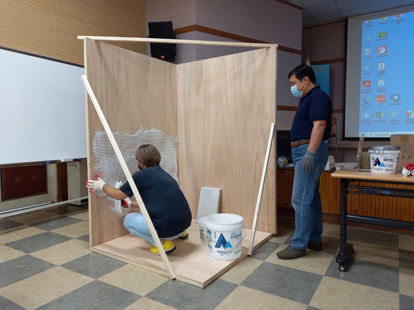 - 바닥,벽 타일 시공법에 대해 직접 실습하고 배워보았어요~^^