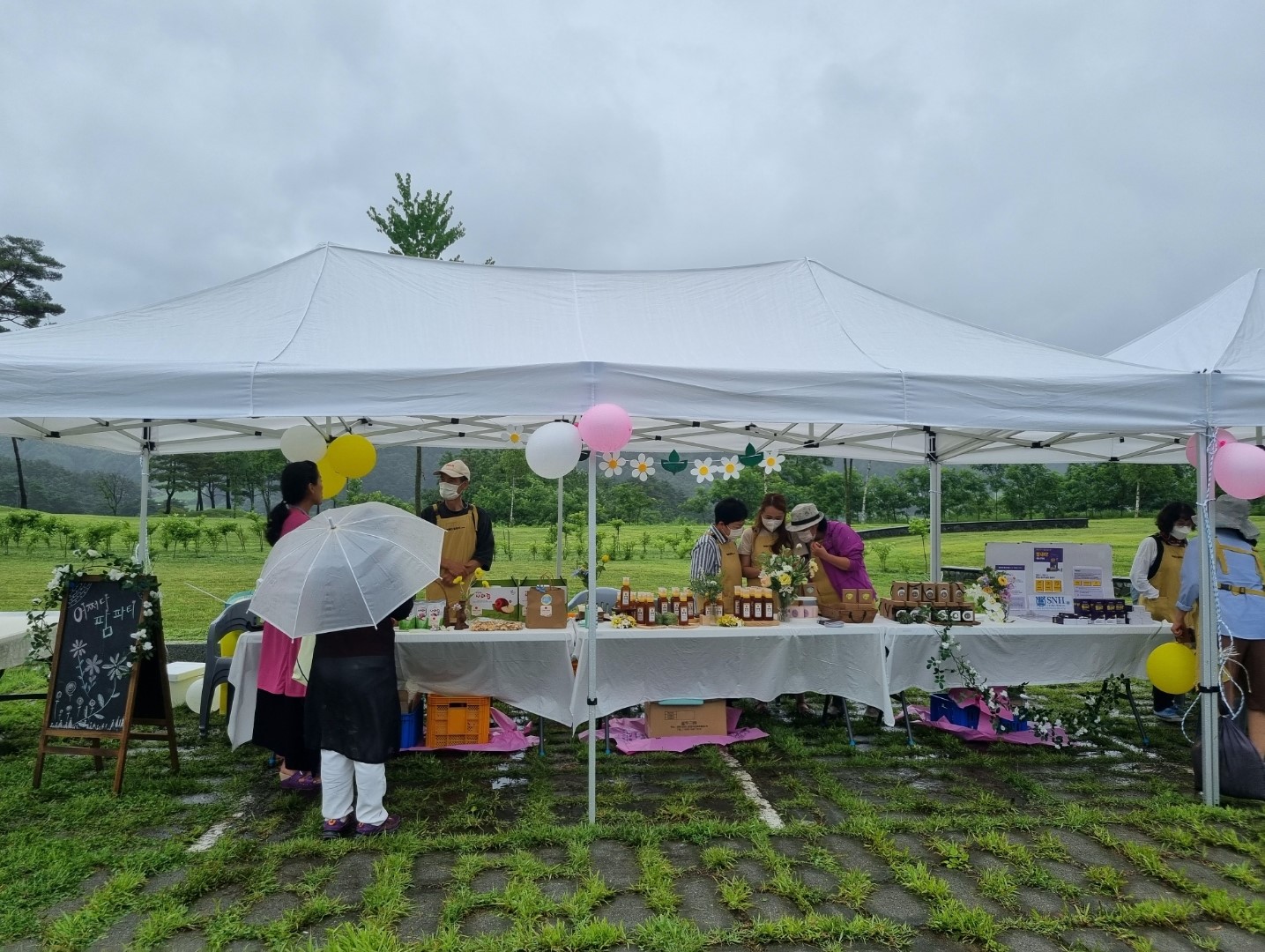 * "팜파티 실습" - 지역자원을 활용한 토종 꿀, 허브비누, 사과즙, 송어유부초밥 및 과일샐러드 등 서울대평창캠퍼스 야외에서 실습 진행했어요.