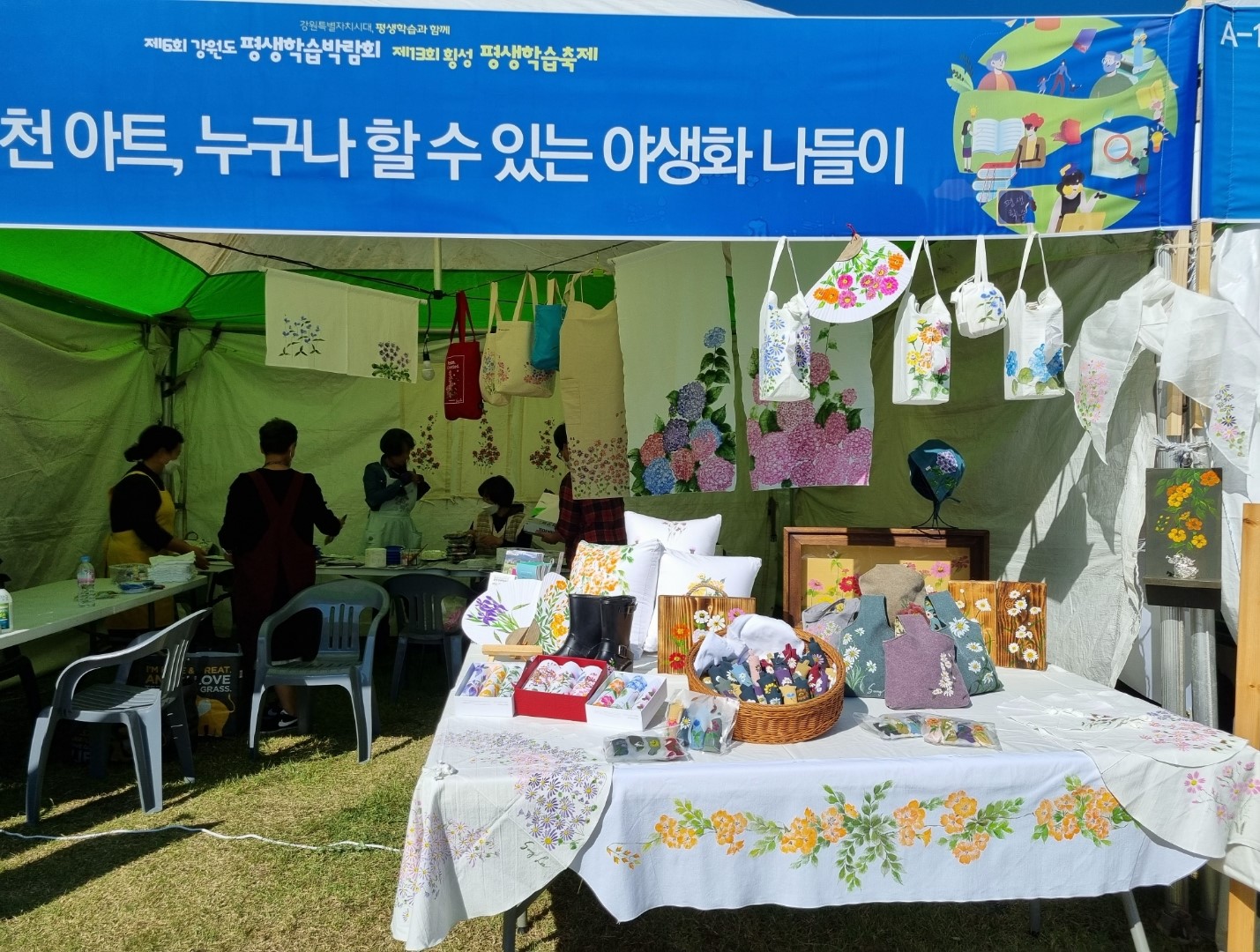 * 강원도평생학습박람회에 평창군 "꽃채운 천아트" 체험부스 운영했어요. 평창의 야생화 백일홍, 데이지 꽃 그려 열쇠고리 만들기~^^