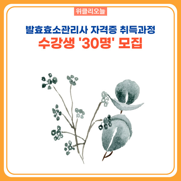 [강원 위클리오늘=김영철 기자] 평창군이 '2023년 제2의 인생학교 심화과정(발효효소관리사 자격증 취득)'을 운영한다.