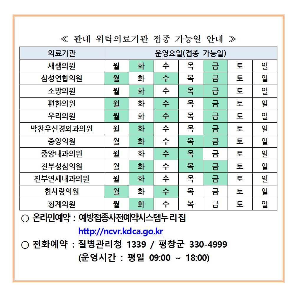 * 3.14.~ 사전 예약 없이 당일 접종 가능