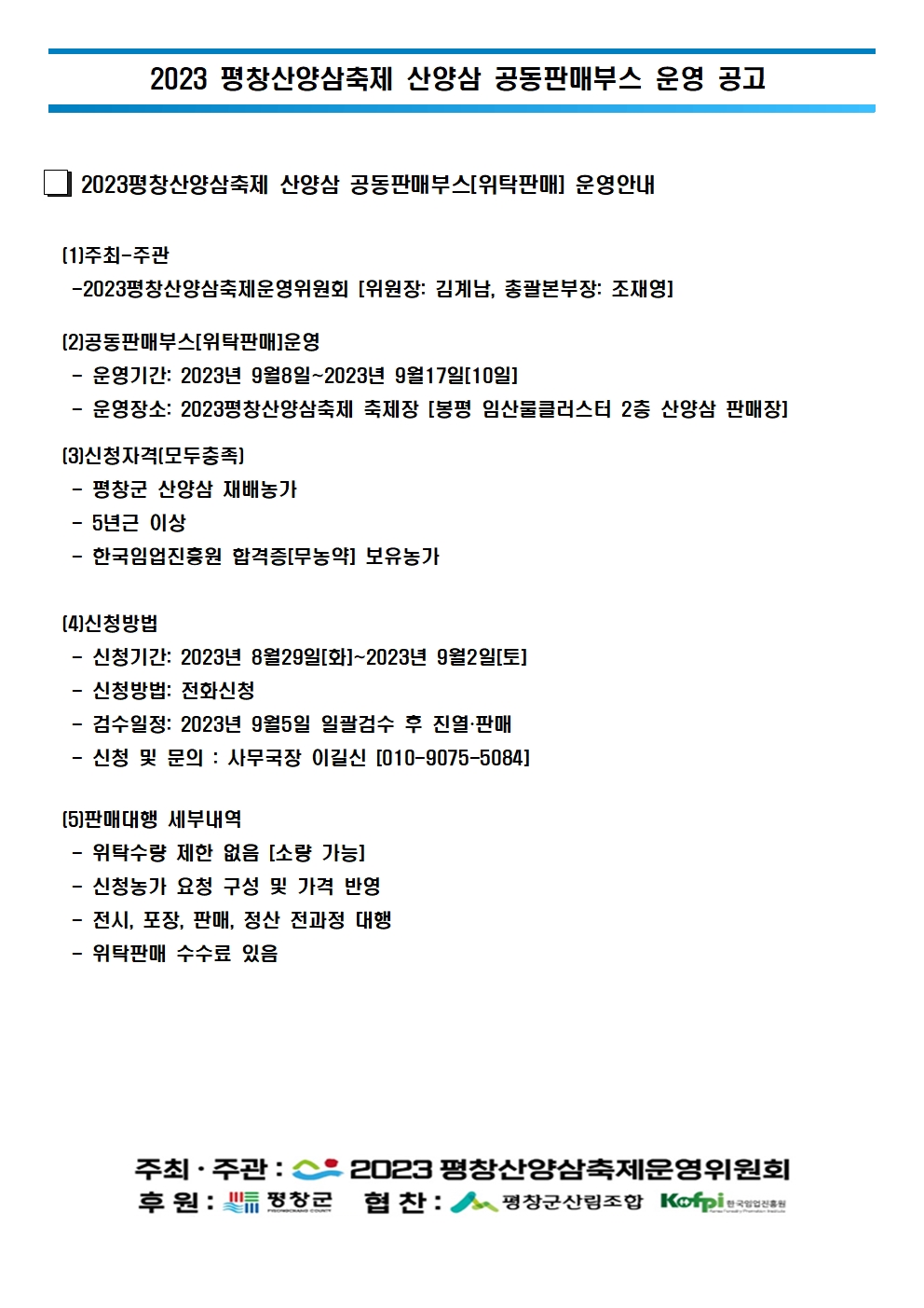2023평창산양삼축제 산양삼 위탁판매 신청 공지
