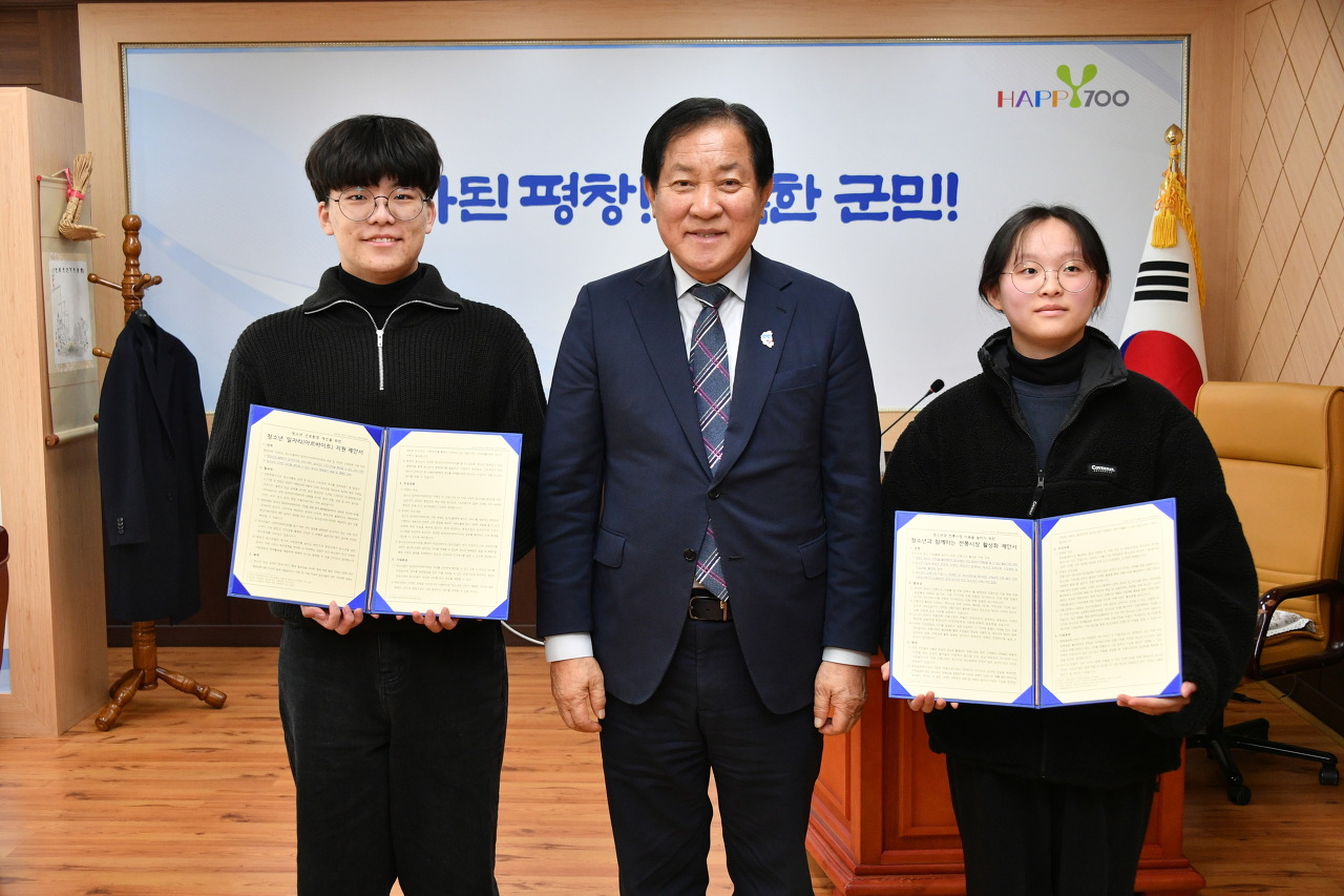 평창군청소년참여위원회(위원장 김용우)는 15일 평창군청을 방문하여 심재국 평창군수에게 청소년 정책 제안서 2건(▲청소년 일자리(아르바이트) 지원 정책, ▲청소년과 함께하는 전통시장 활성화 정책)을 전달했습니다.
