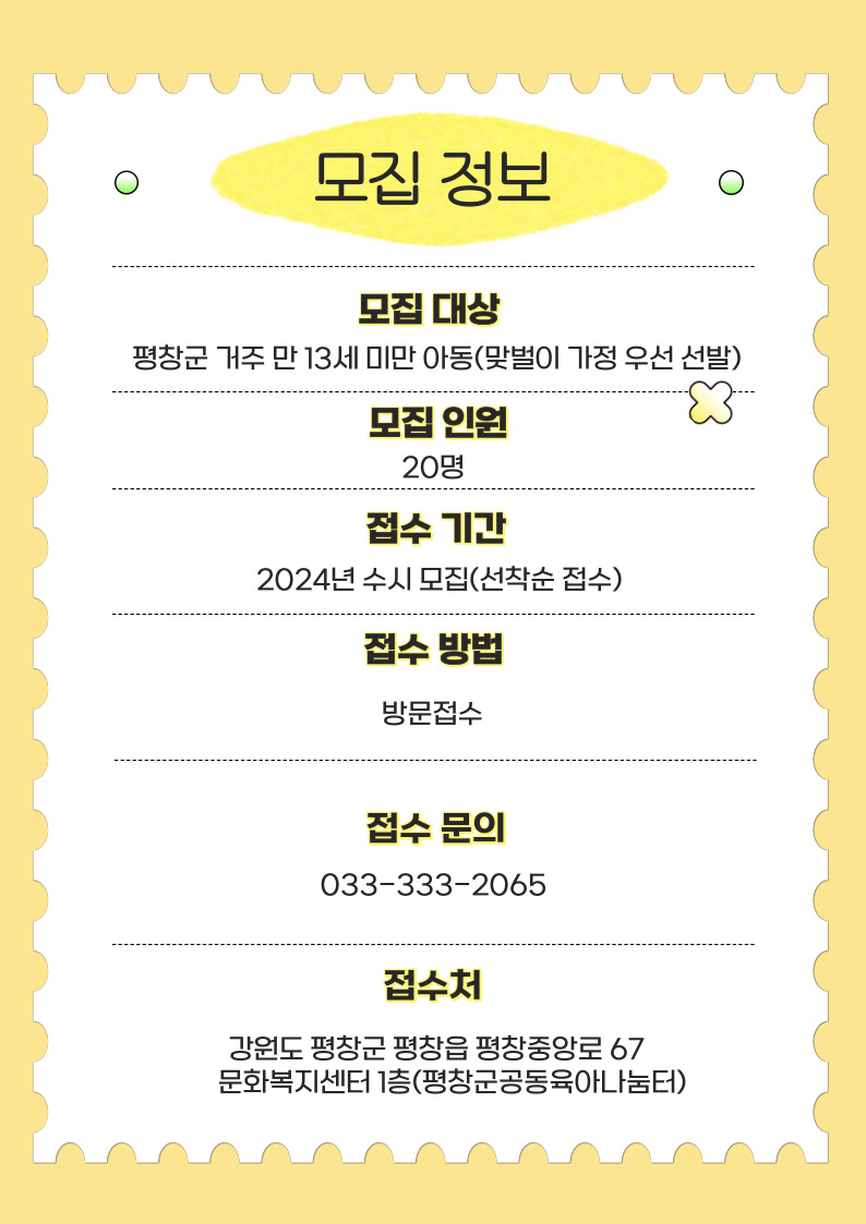 2024년 평창군공동육아나눔터 이용모집입니다. ^^