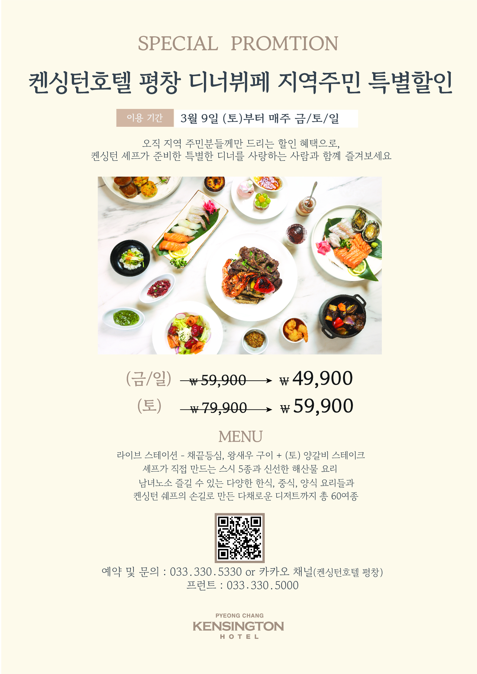 ★ 켄싱턴호텔 평창 디너뷔페 지역주민 특별 할인 (매주 금/토/일 운영)