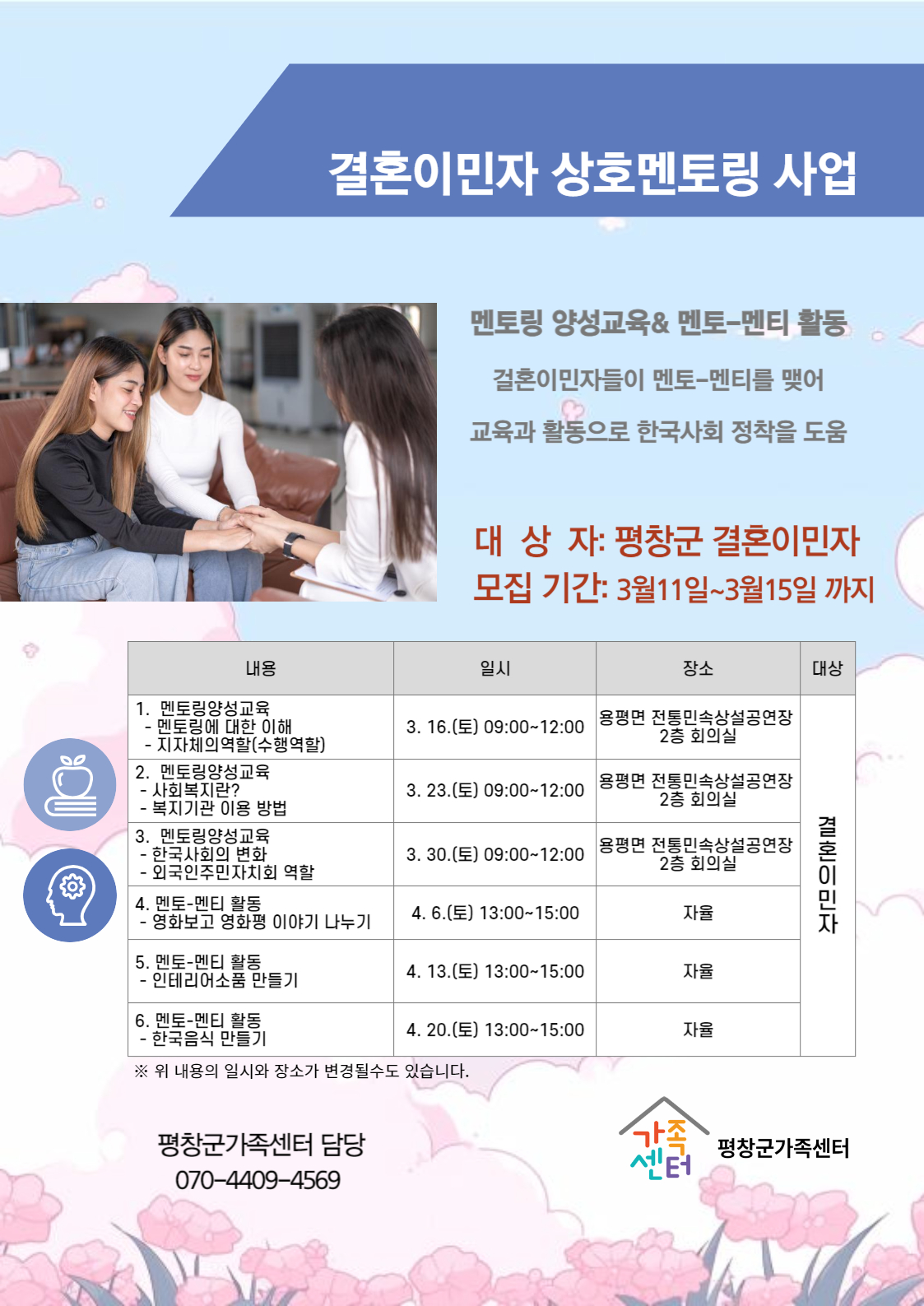 "결혼이민자 상호멘토링사업" 참여자 모집 합니다.