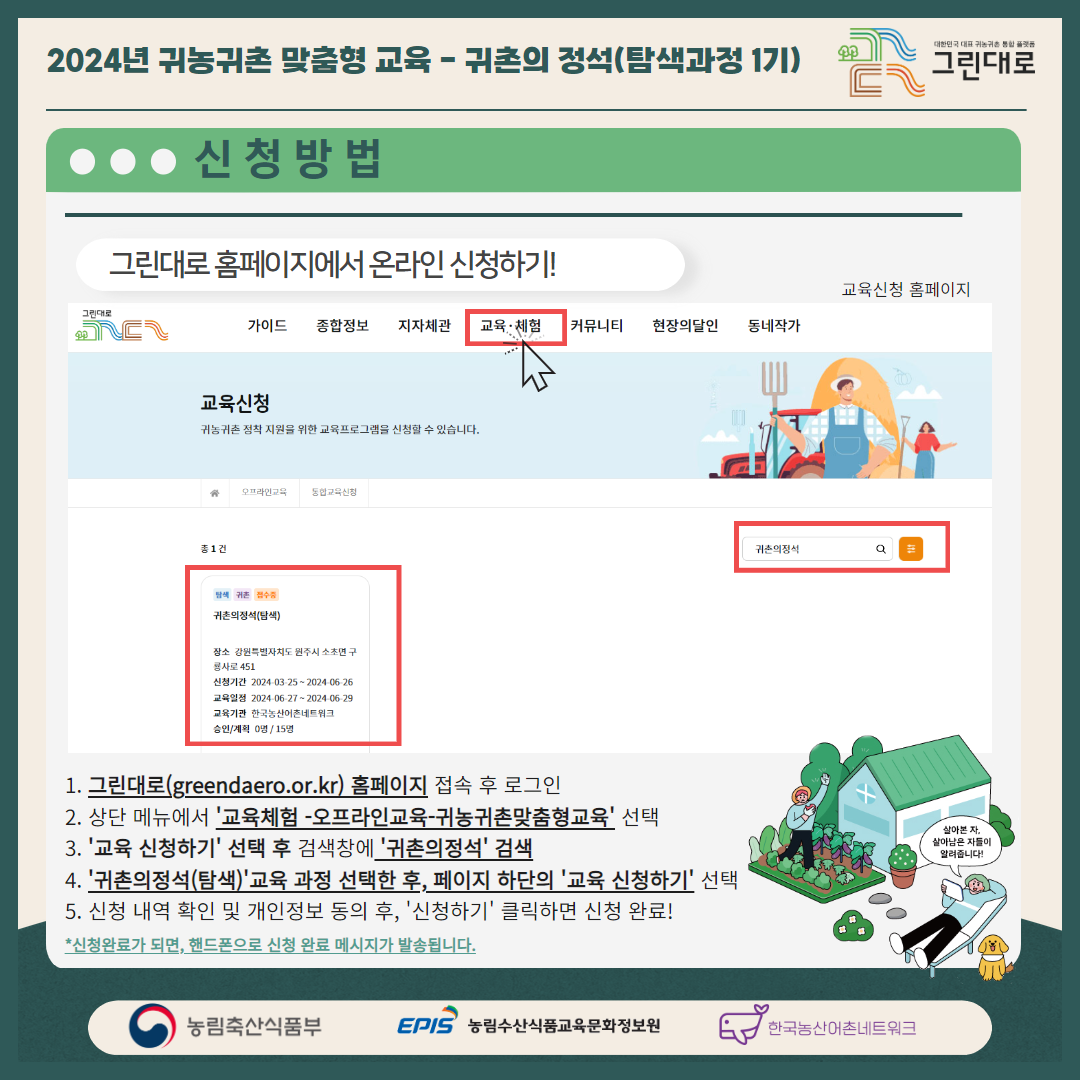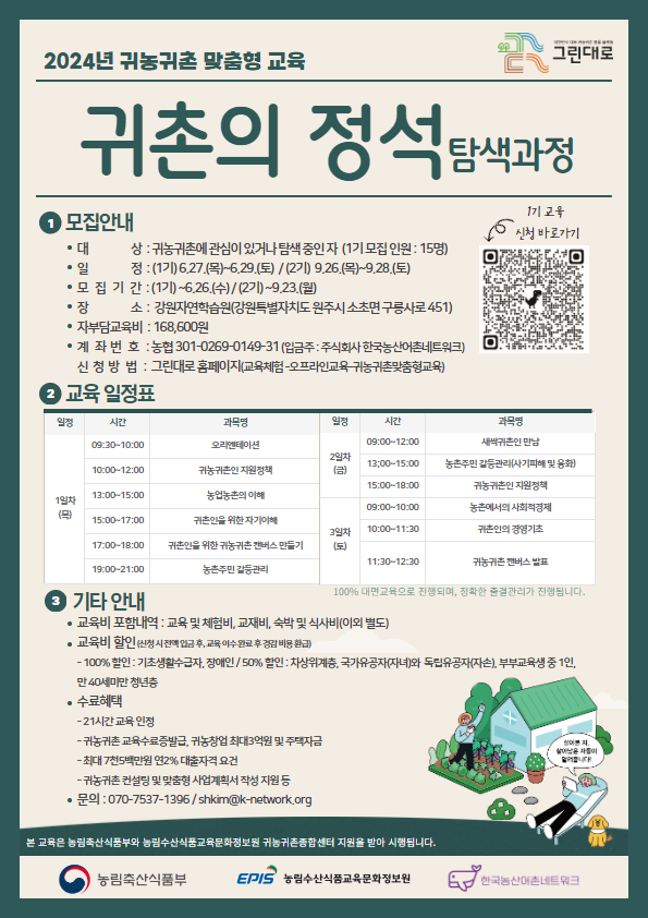 2024년 귀농귀촌 맞춤형 '귀촌의 정석(탐색과정)'교육 안내