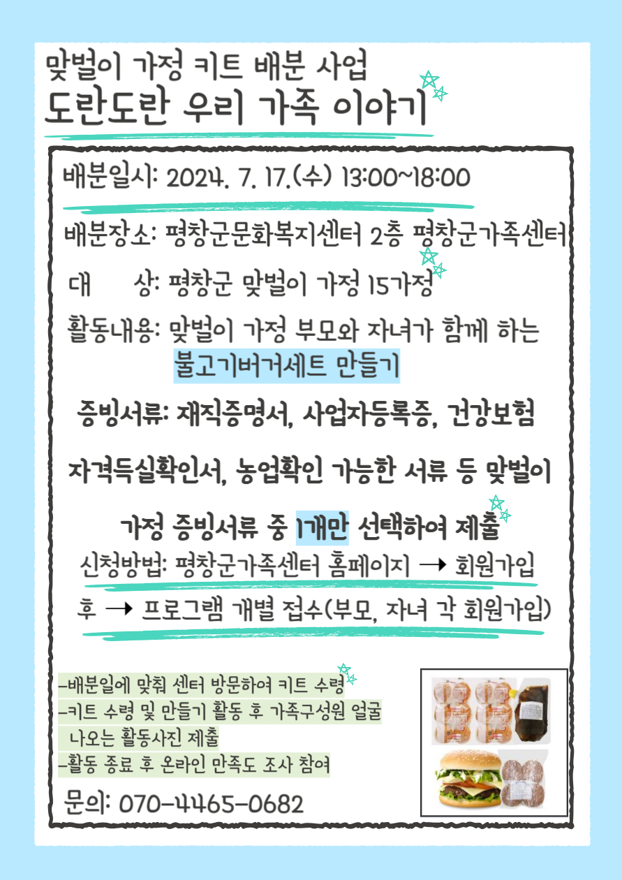 [도란도란 우리 가족 이야기(맞벌이가정 키트 배분 사업)] 대상자 모집