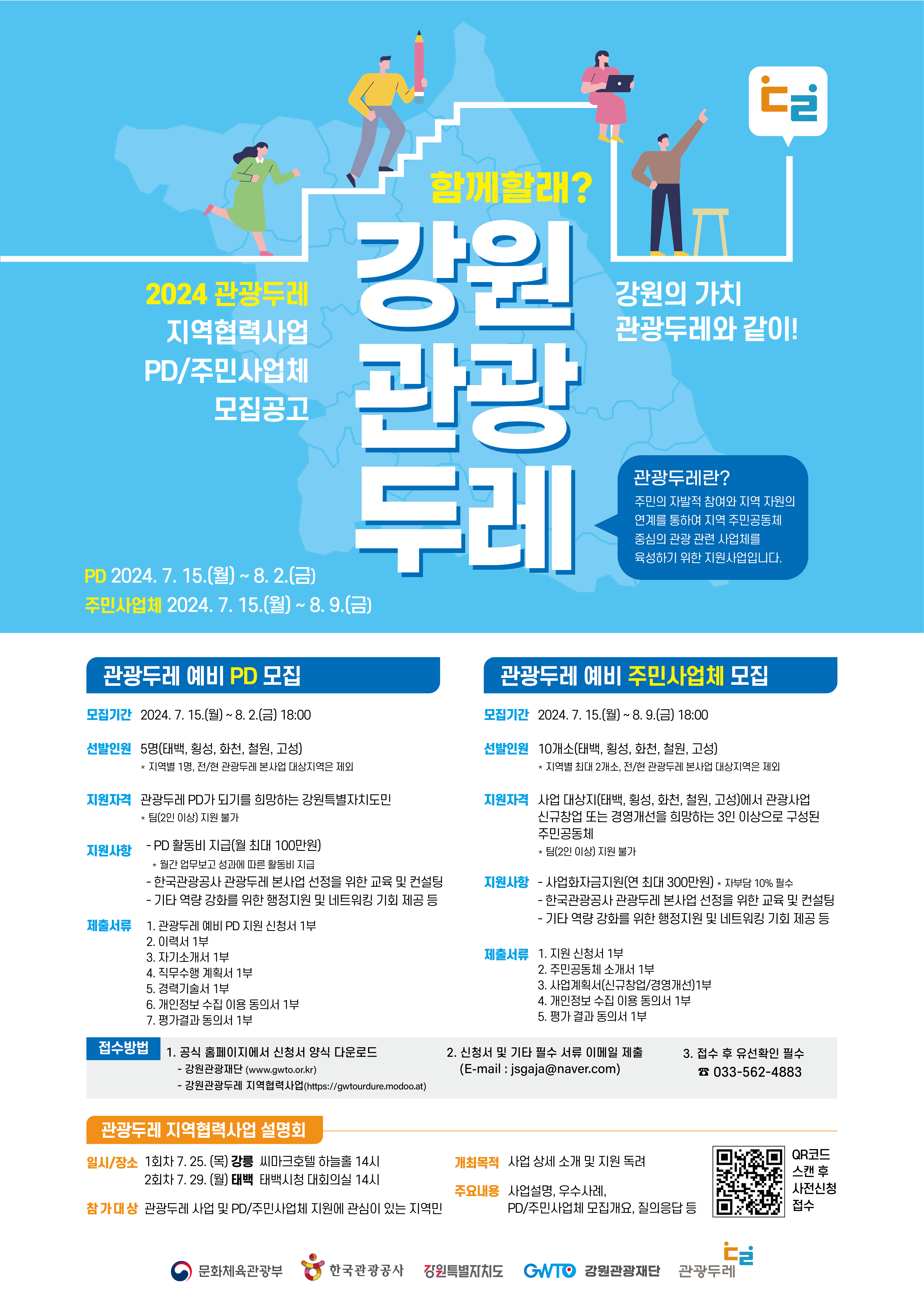자세한 내용은 강원 관광두레 홈페이지와 강원관광재단 홈페이지를 확인해주세요!