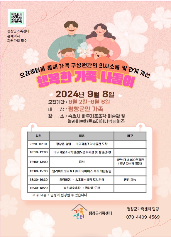 [평창군가족센터] "행복한 가족 나들이" 대상자 모집 마감