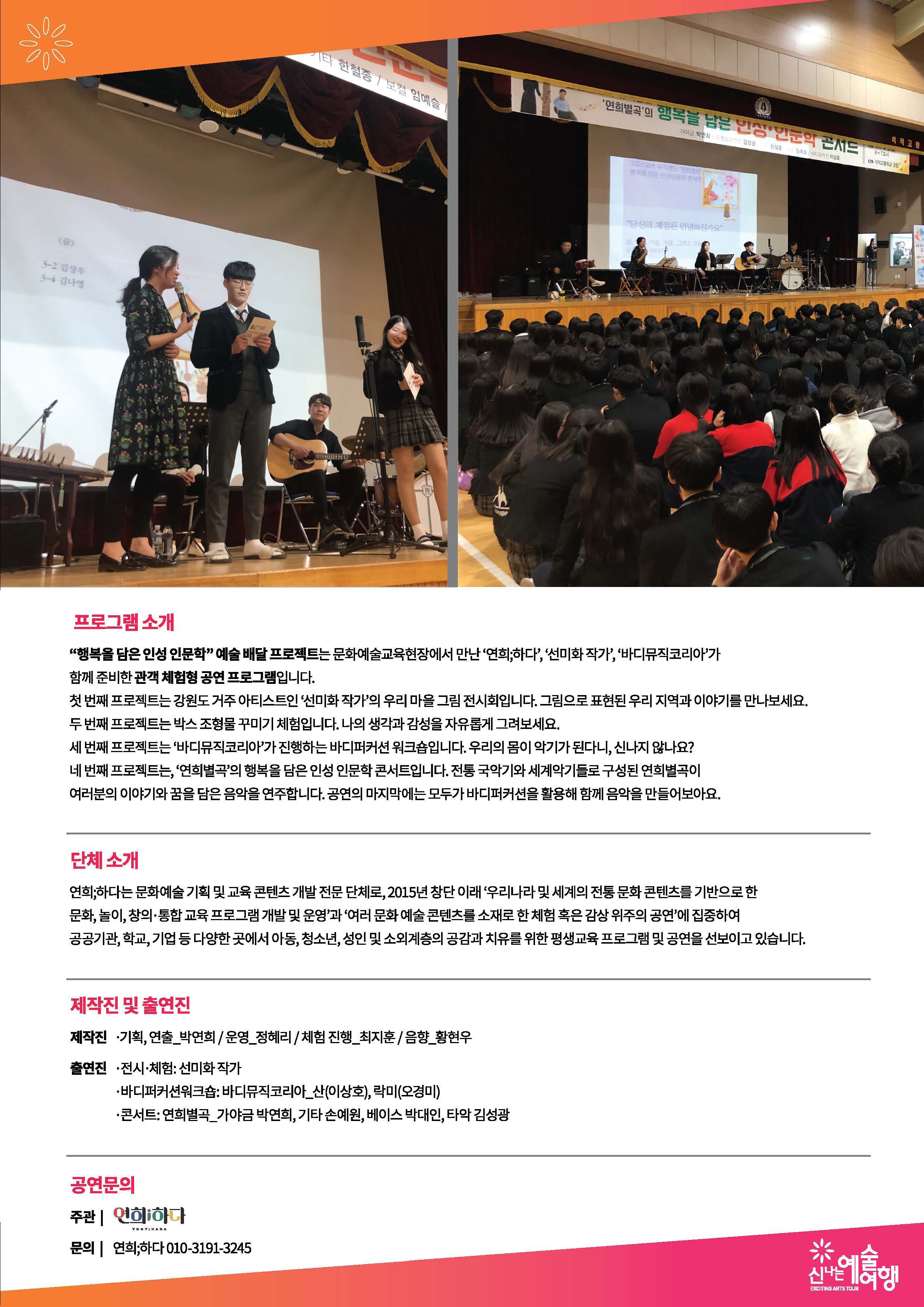 그 중 강원도 16개 지역을 순회하는 행복을 담은 인성 인문학 예술배달프로젝트는