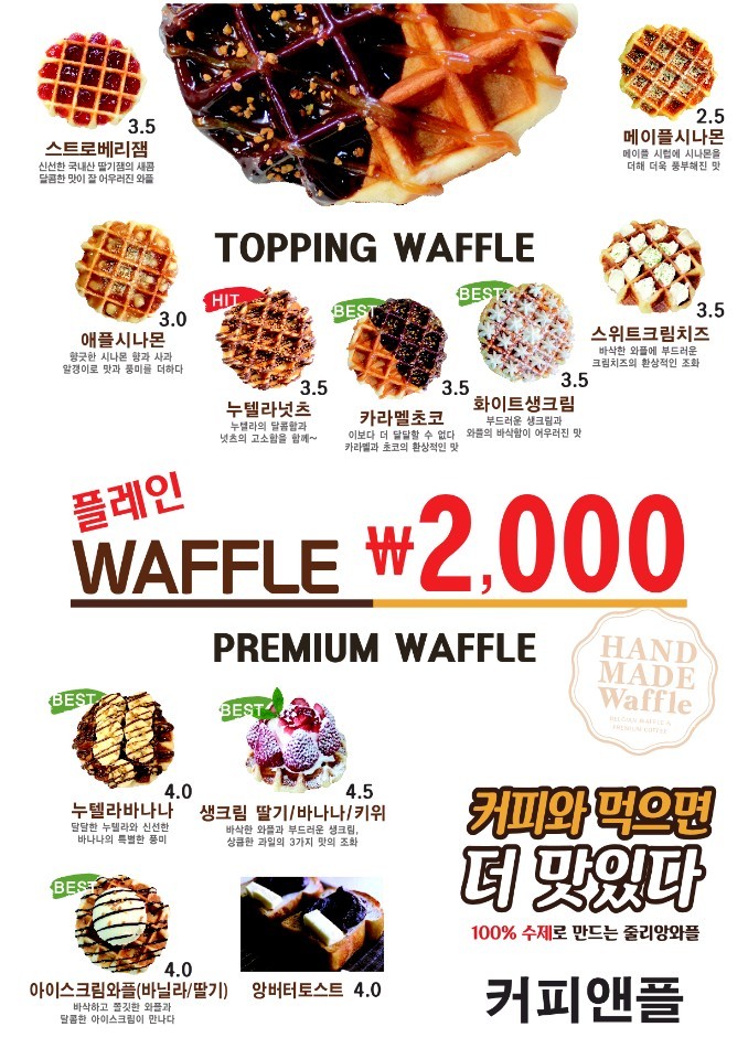 음료 3잔 사시면 오리지날 와플 1개가 무료!!