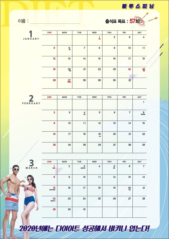이벤트1 1월2월3월 출석 스탬프도장출석체크 성공시 5만원상품권지급