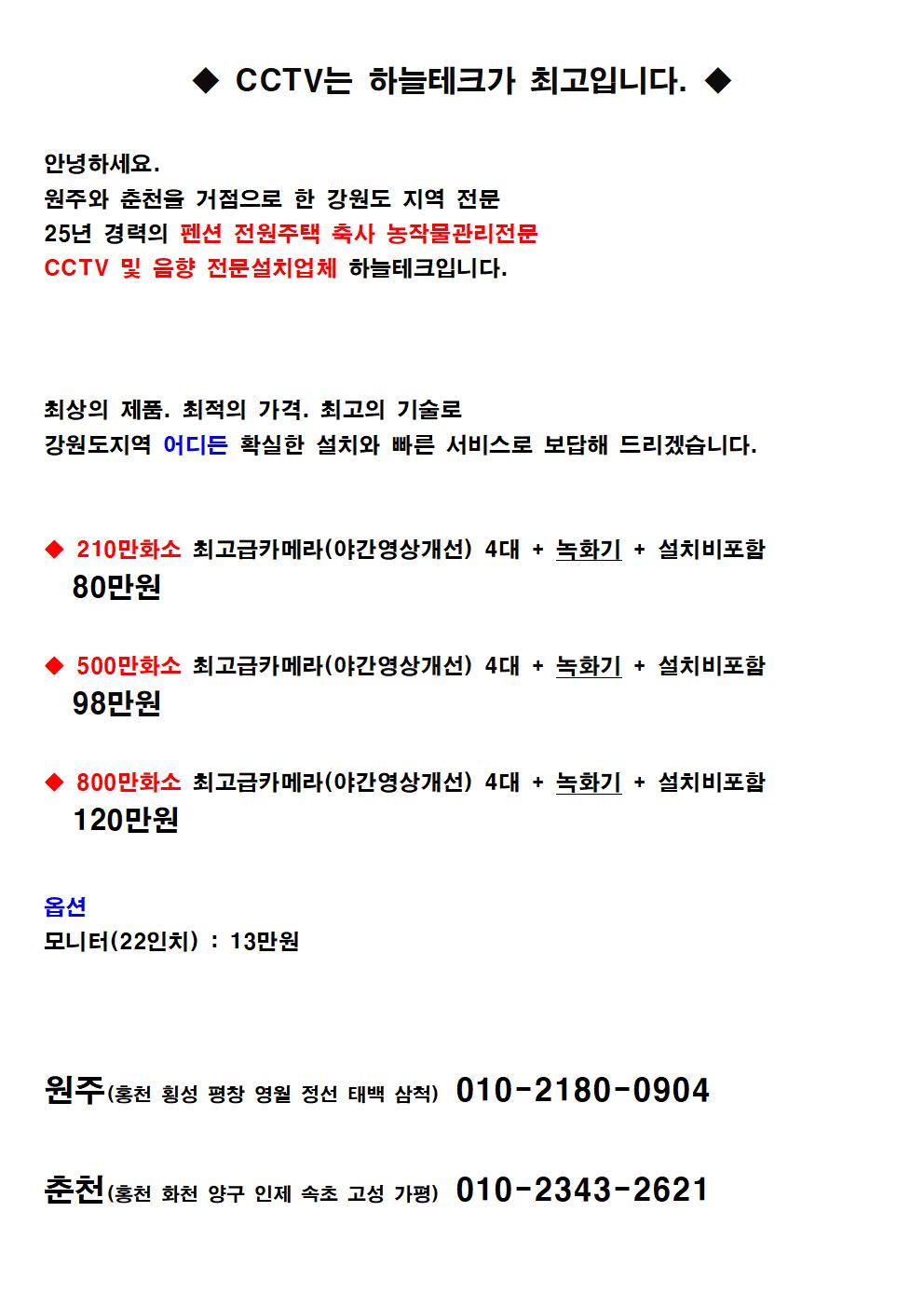 강원도지역전문 CCTV(감시카메라)설치