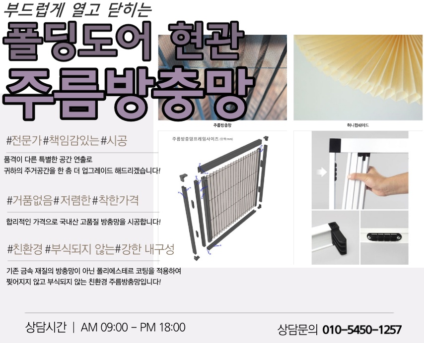 폴딩 도어의 개폐성과 심미성을 동시에 만족하는 폴딩도어 전용 방충망입니다!
