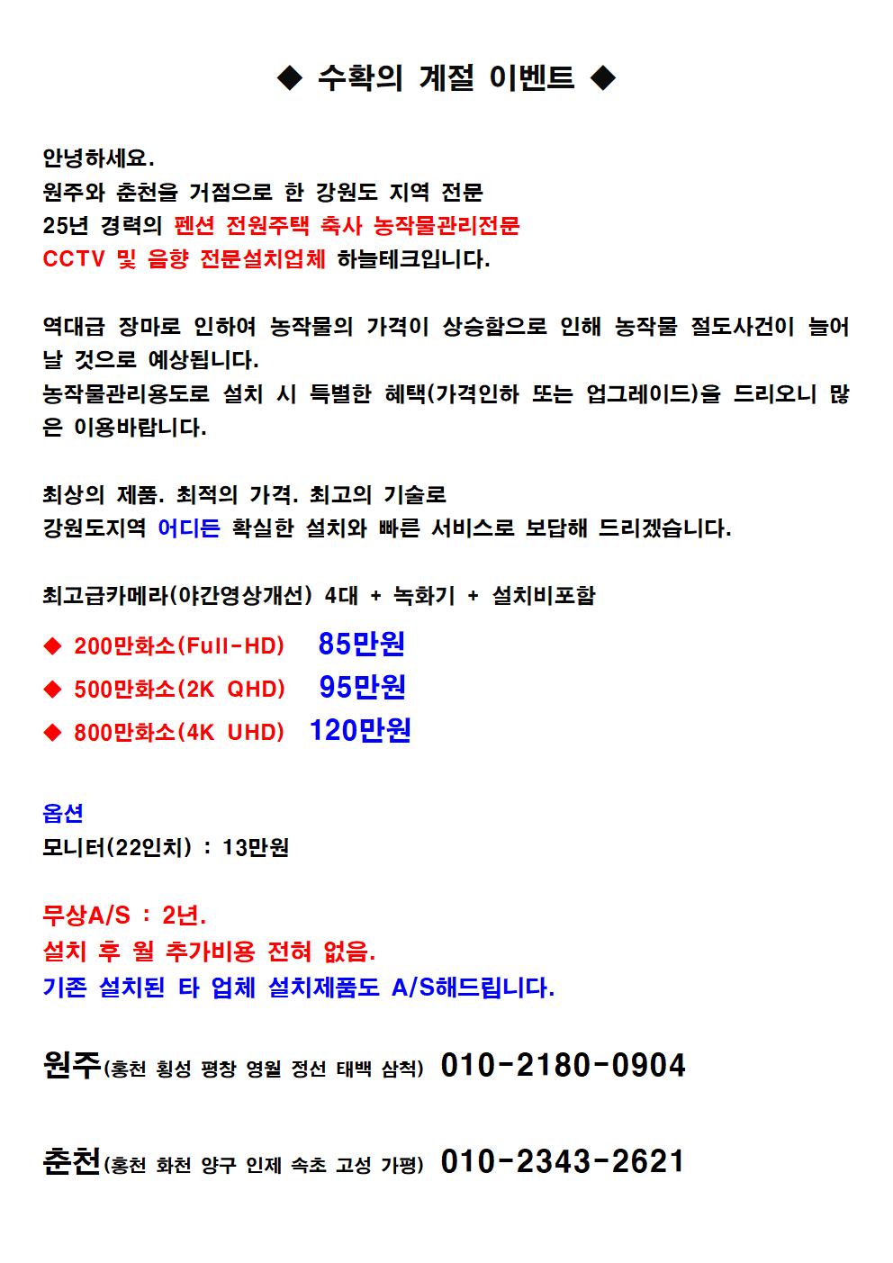 강원지역전문 CCTV(감시카메라) 설치 이벤트