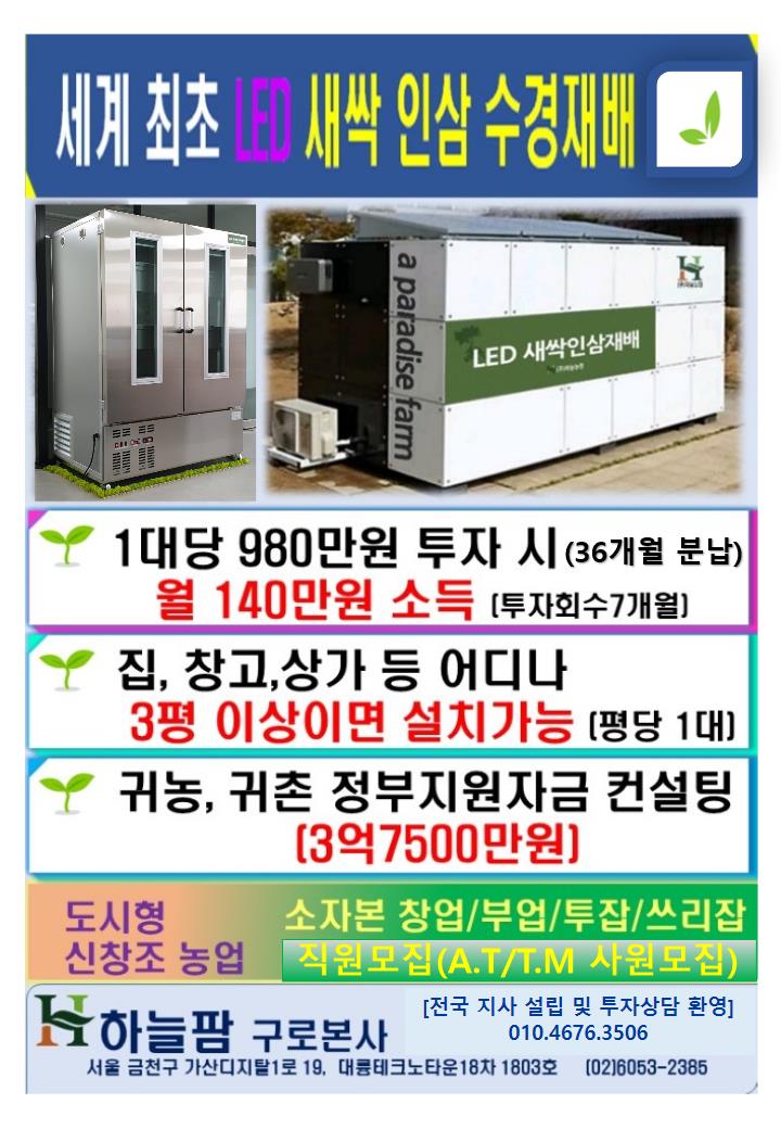 1년  된  묘삼을  구입해서  기계에  식재하면  스마트  팜  기계가  재배를  하기  에  업무  시간도